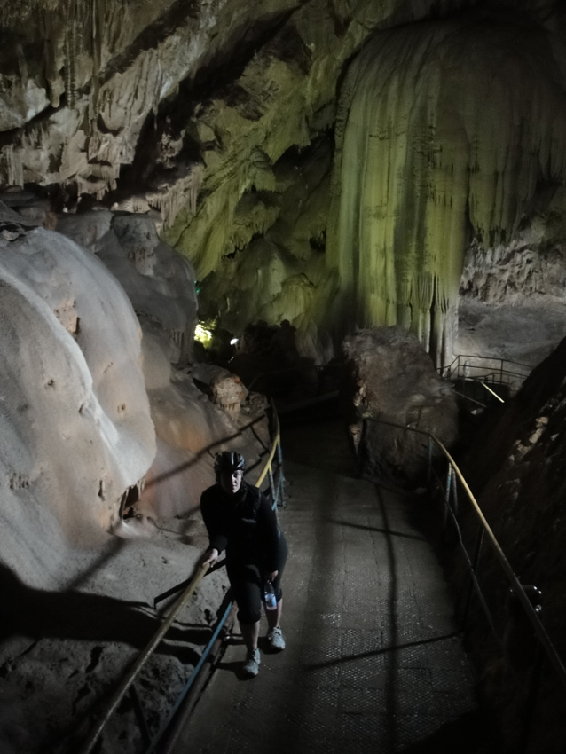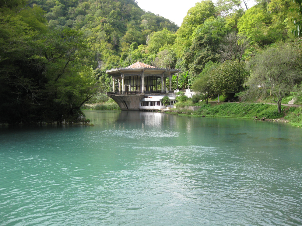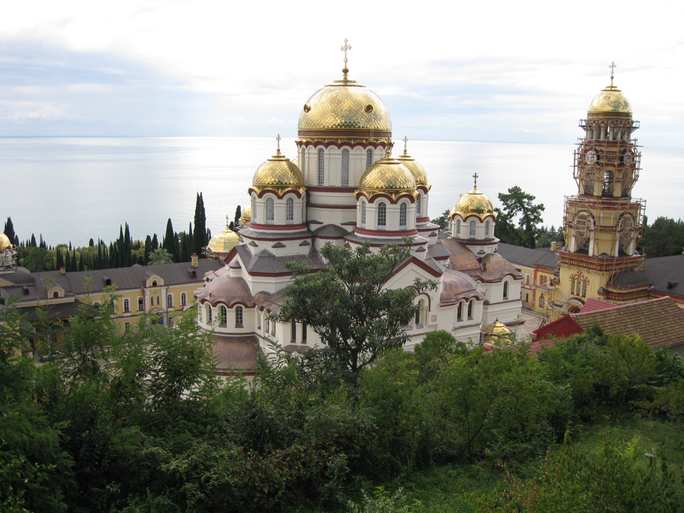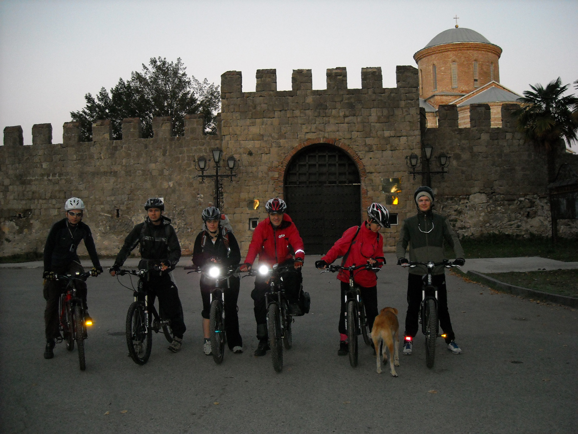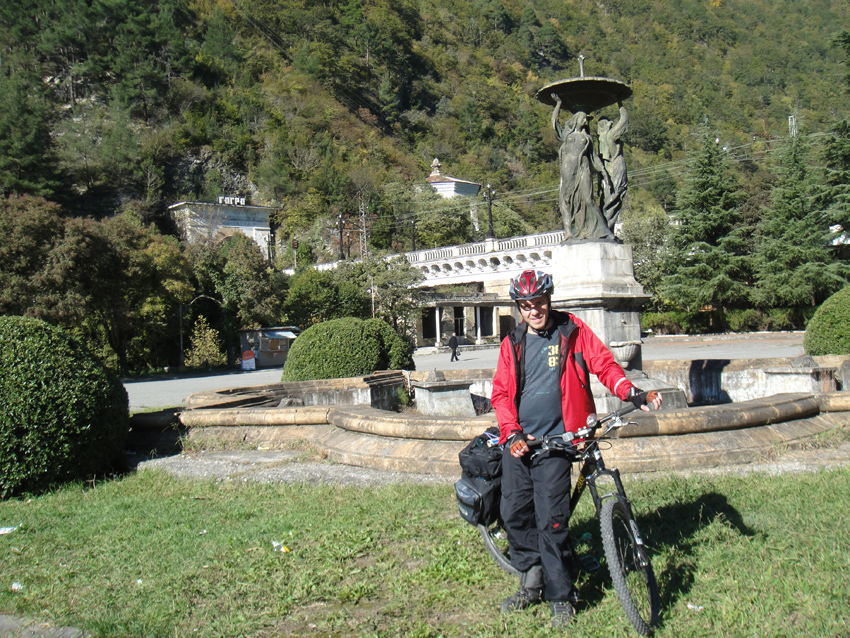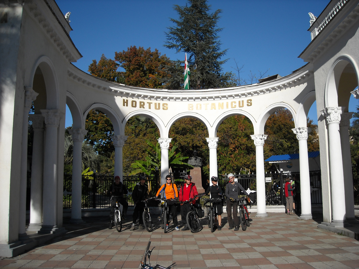 В общем пещера мне понравилась, не то чтобы прям за душу взяло, нет, ничего сверхестественного там нет, девчонок так вообще не впечатлило, но мне понравилось, если кто был в пещере азишской, так я скажу вам — афонская гораздо круче, последний зал вообще классный, оч. понравился. После него опять выходишь на мини-метро и уезжаем уже из другого места. Вышли в час, сразу поехали за вещами, по пути увидел красивое озеро в центре с кафе, приехали на квартиру, быстро попили чаю, перекусили и погнали. Афон конечно весь очень красивый город, хоть и не большой, но даже просто походить по нему приятно, красивые дороги и много достопримечательностей. Выехали аж в 14:00, отклонились от графика на 2 часа, но пещера того стоила, и мы осознано шли на то, что мы приедим в Пицунду по темну, к тому же в Гудауту (в пос.Лыхны) решили не заезжать, по словам местных, ничего там интересно нет, княжеский дворец - одна развалина, а храм не впечатляет. По дороге к нам присоединился ВелоТур до Гудауты, дальше они свернули на Мысру, ехали мы может даже чуть быстрее, но за счет остановок и поломок, получилось одинаково, Сергей-А встал ведущим, ехали на колесе, темп он взял конечно приличный, даже в подъемы ниже 26км/час не ехали. Серега М у нас на колесе ездить не умеет, все время немного левее едет. На одном из участков у него падаете насос, он резко тормозит не подняв руку, тут же тормозит Макс за ним, я за Максом не успеваю среагировать въезжаю ему в заднее колесо, и красиво так (прям для видеороликов) лечу через руль шлемом ему смачно попадаю в рюкзак, хорошо что у него рюкзак на плечах, а то я бы ему и сломать мог что-нибудь на спине, Макс от удара бьется неприятно коленом об раму, потом она у него болела. Обматерили Серегу М, у меня от удара передним колесом сбивается тормоз, колесо начинает притормаживать. Проезжаем пост ГАИ, какой-то урод из УЧС (управления по чрезвычайным ситуациям) на черном БМВ в зеленой форме подрезает наших прямо у поста, сказал ментам, чтобы нас остановили, нахамил Кате, сказал нам, что мы едим как стадо баранов и начинает жаловаться главному гаишнику на КПП (вроде капитан), что мы типо его по дороге подрезали и чуть не сбили, ведет себя по хамски. Оля из велотура рассказала потом, что они ездили в прошлом году в двоем там и он по дороге остановил их и в наглую сказал, что если вы типо хотите ехать дальше гоните деньги, вроде они тогда отделались всего за 100руб. и неприятным моментом «», но все таки, вот такое там УЧС, в который Даша как-то советовала оставить маршрут движения для безопасности, да ну их в баню, лучше там ничего не оставлять. К счастью гаишник оказался хорошим мужиком, зовут его Игорь, мало того, что он успокоил этого «зеленого», так еще и сопровождал нас до самой Гудауты, потом дал нам свой мобильный, записал наш и далее поехал с велотуром, а нас сопровождала другая машина ГАИ до Бзыбты. Хотя внешне не казалось, что есть в этом необходимость, но ехать было по трассе спокойней, когда за тобой машина сопровождения. После пары километров, как случилась неприятность с тормозом я понял, что ехать дальше так не смогу за толпой с такой скоростью, останавливаюсь отрегулировать тормоз, более или менее отрегулировал, но все равно не получается настроить, обычно у меня быстро получается, а тут прям чувствую что-то не то, еду дальше еще через несколько километров начина