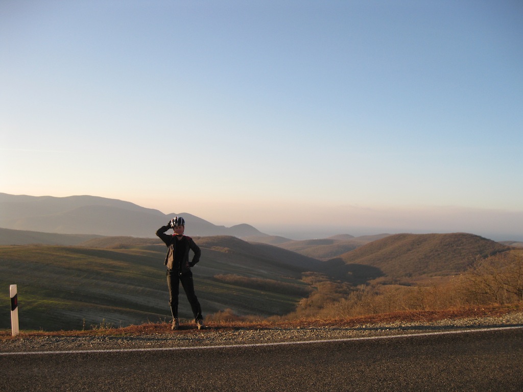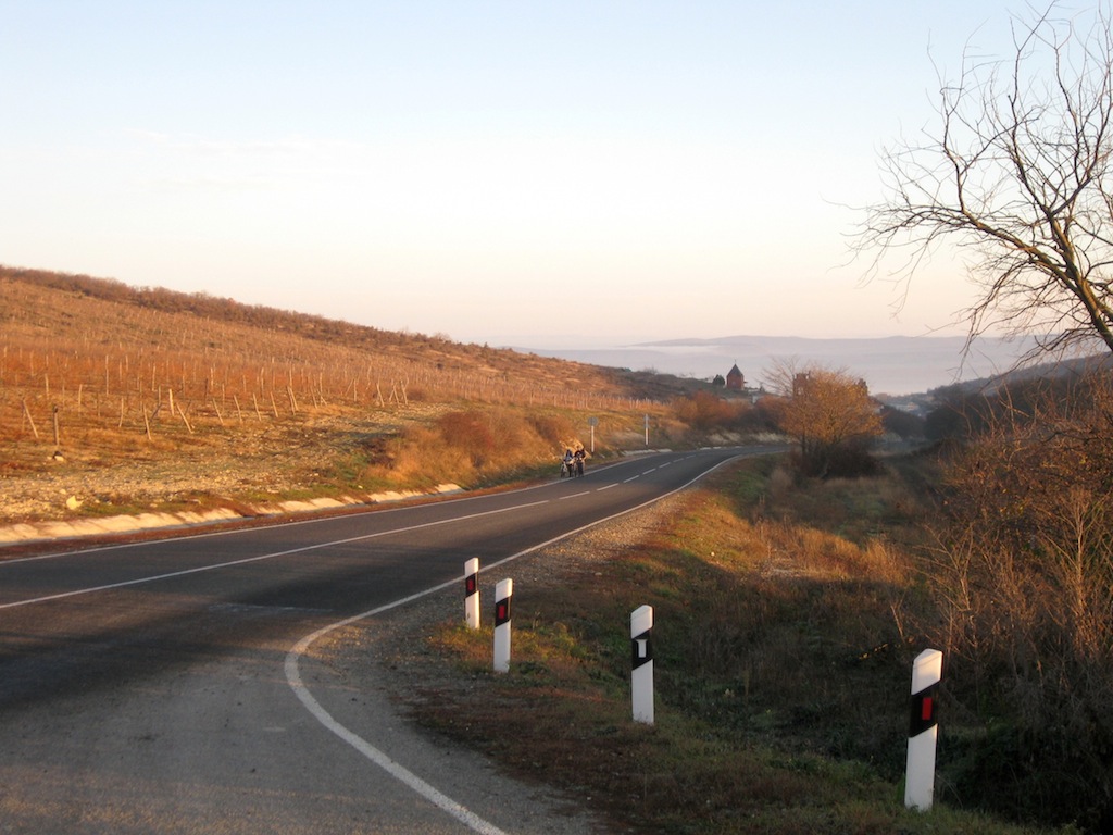 Как и любой подъем, этот рано или поздно закончился и начался скоростной спуск по отличной асфальтовой дороге на сокрости под 60 км/ч практически до самого п.Сукко. Показалось море! Цель была близка, и мысли об отдыхе просто захлестывали.