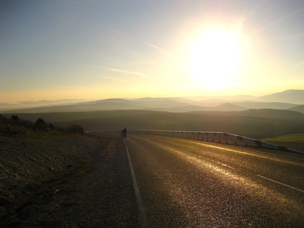 5:30 Тоннельная встретила нас непроглядным туманом срывающимся в дождь и холодным ветром. Впереди нас ждали сплошные спуски в ночи. Ехалось довольно таки комфортно, дорога отличная, машин мало. Единственное на такой скорости пальцы замерзали на глазах) Рассвет мы встречали уже как раз после поворота между поселками Заря и Рассвет))