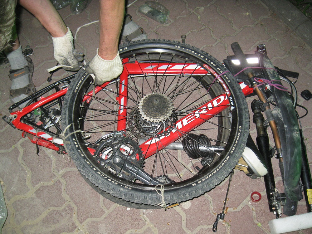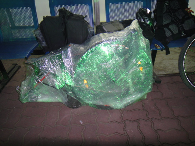 [spoiler]30 апреля в 15:10 мы выдвинулись на электричке в Ростов через Староминскую, доехали на велах до аэропорта и примерно в 12 ночи уже начали разборку и упаковку велов (колеса, руль, багажник, крылья, переклюк, сидуха, все это компактненько сняли и прикрепили к раме, упаковали пенкой и скрутили стреч-пленкой), на вскидку, заняло 1,5часа, обратно уже в двое быстрее, научились