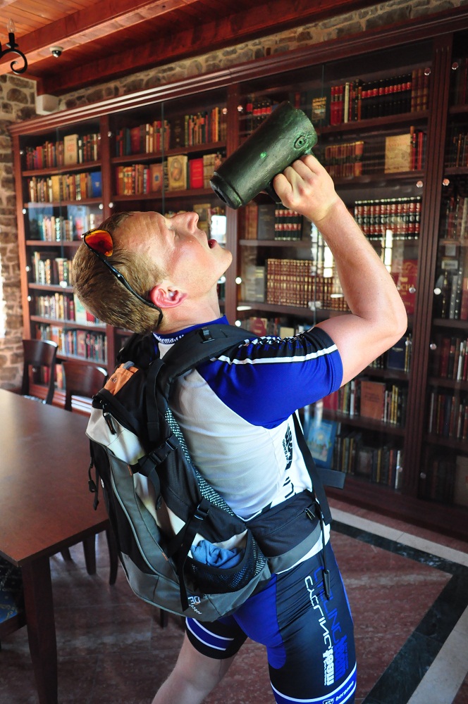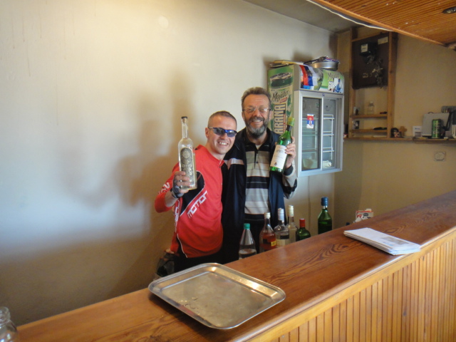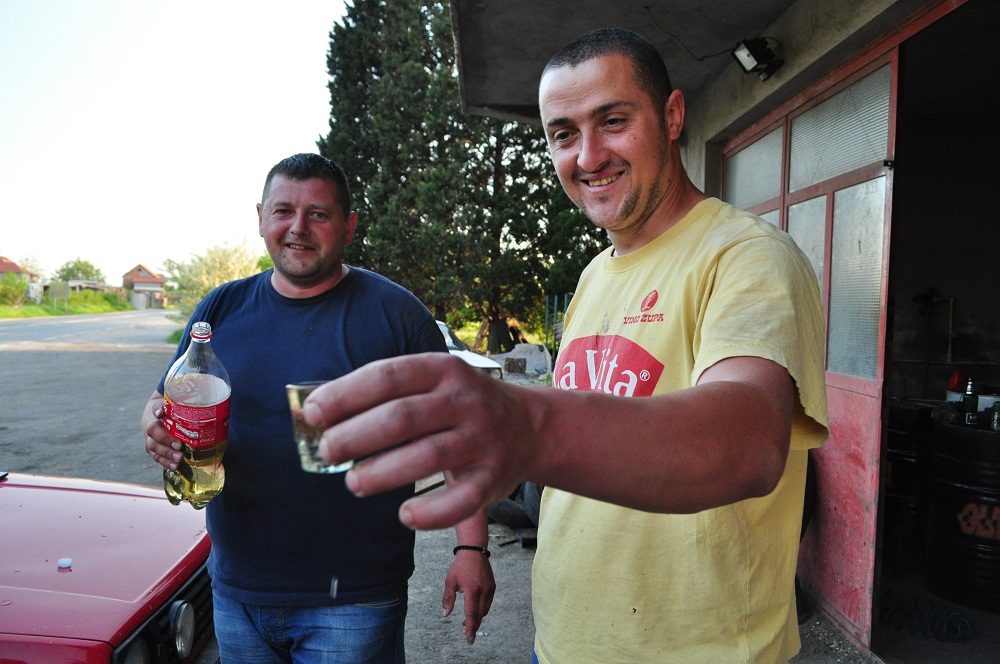 и волею судьбы мы останавливаемся возле местной шиномонтажки, попросив воды два местных парня угощают нас яблочной ракией (на вкус градусов так 45-50, но приятной)