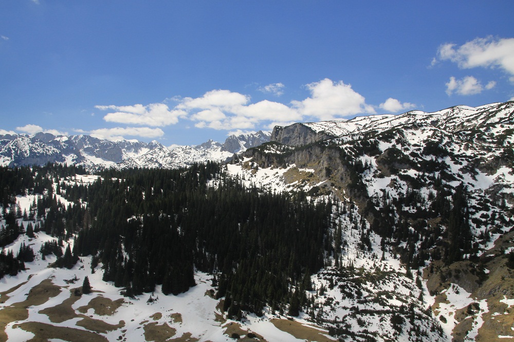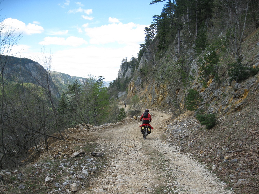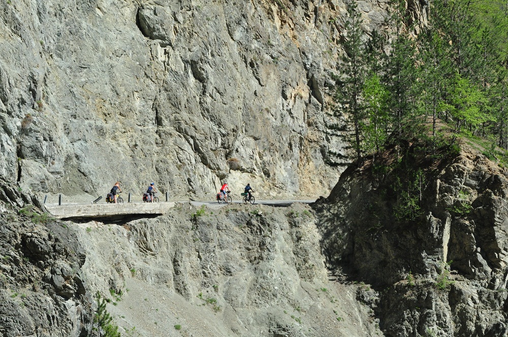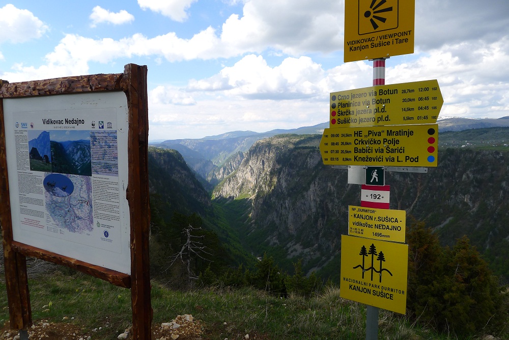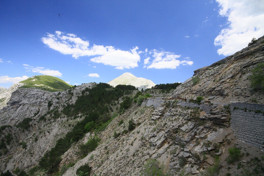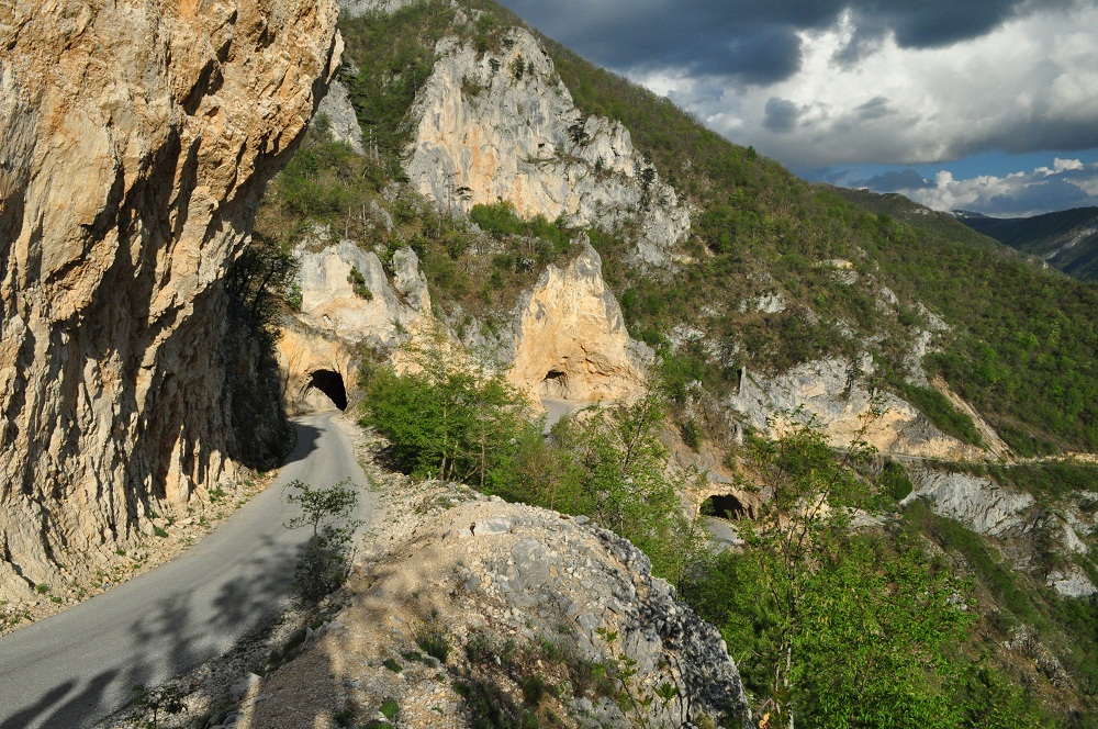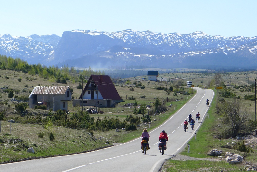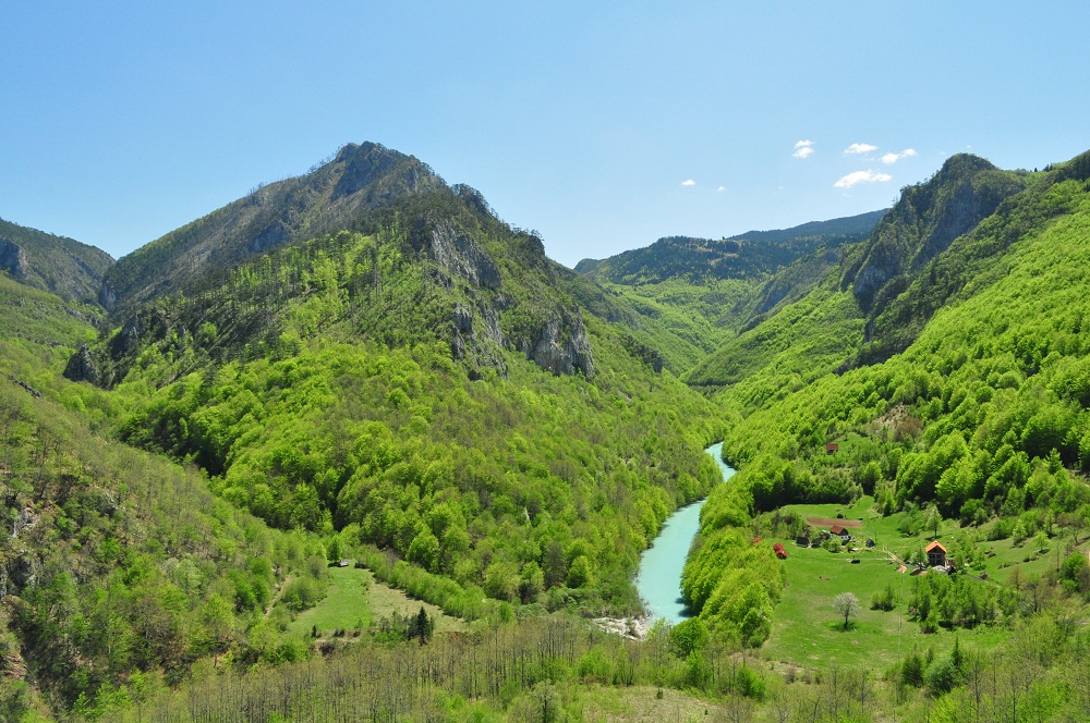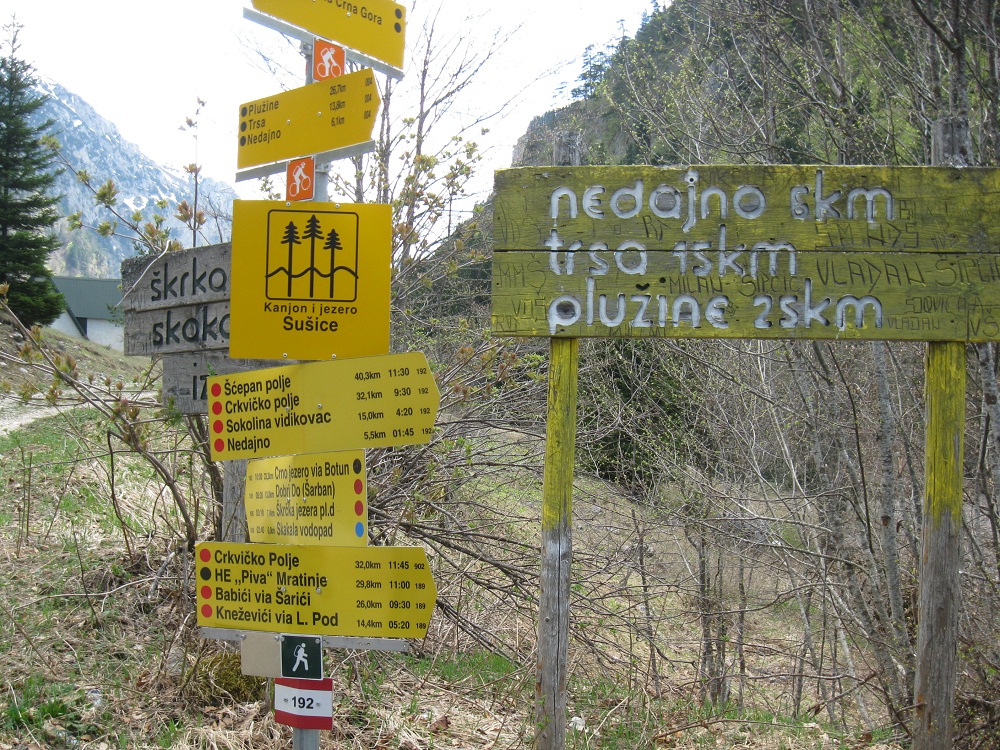 . Дорога по направлению к Никшичу вдоль красивой реки Морача радует глаз, но вскоре нам сворачивать, мы не любим ездить по основным дорогам, сегодня наш маршрут пролегает по направлению к селу Матешево, нам предстоит сложный подъем из протяженного серпантина с общим набором высоты 1360м за день. Дорога довольно пустынная, ехать приятно, наслаждаемся видами каньена реки Малариека и открывающимися по правую сторону видами на горы Проклятье.