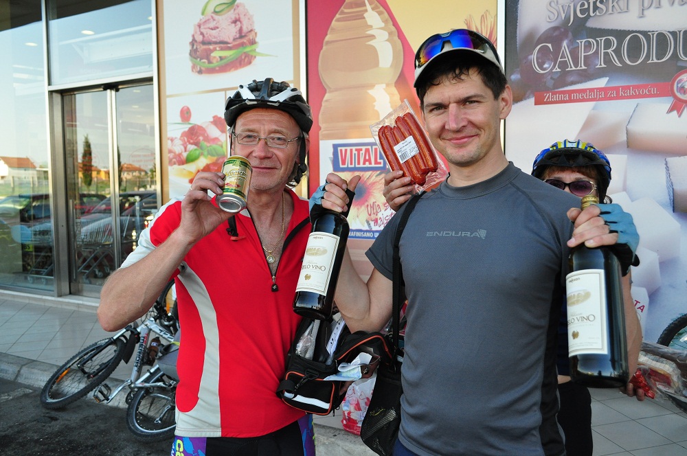 Прагматичный Боря перерыл рюкзак Оли и заставил прикопать еще и лишние вещи, которые ей в итоге не особо и понадобились. Выехав на трассу сразу увидели супермаркет и заехали затарится на предстоящий вечер и утро, т.к. не планировали останавливатся в Подгорице а выехать за город для бивака в палатках.