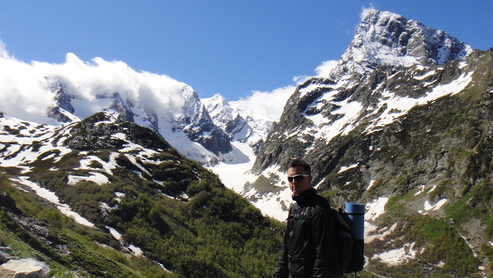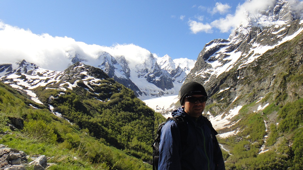 которая была на экскурсии. Взбодрившись, мы поехали вниз до поляны Буулу-тала с которой открывался вид на гору Домбай-Ульген (самая высокая на Западном Кавказе – 4048). По пути к поляне так все были увлечены видами, что забыли, что я сказал «не разгоняться, т.к. поляна близко», и в результате при торможении только профессионализм позволил избежать серьезных столкновений. Отойдя от от адреналина