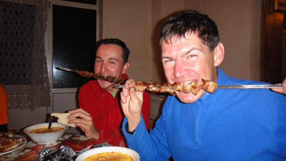 Вид на долину реки Псху:Устали ребята:Погода была сказочная, нам опять повезло. Спустились довольно быстро. Перекусили в лагере и отправились с вещами обратно на оз.Рица где предстояла наша 3яя ночевка в гостинице. Все успели благополучно до темна. Т.к. мы порядком сэкономили на проживании, сегодня я заказал на ужин борщ и шашлык с общаковых денег и наконец-то все сполна наелись.