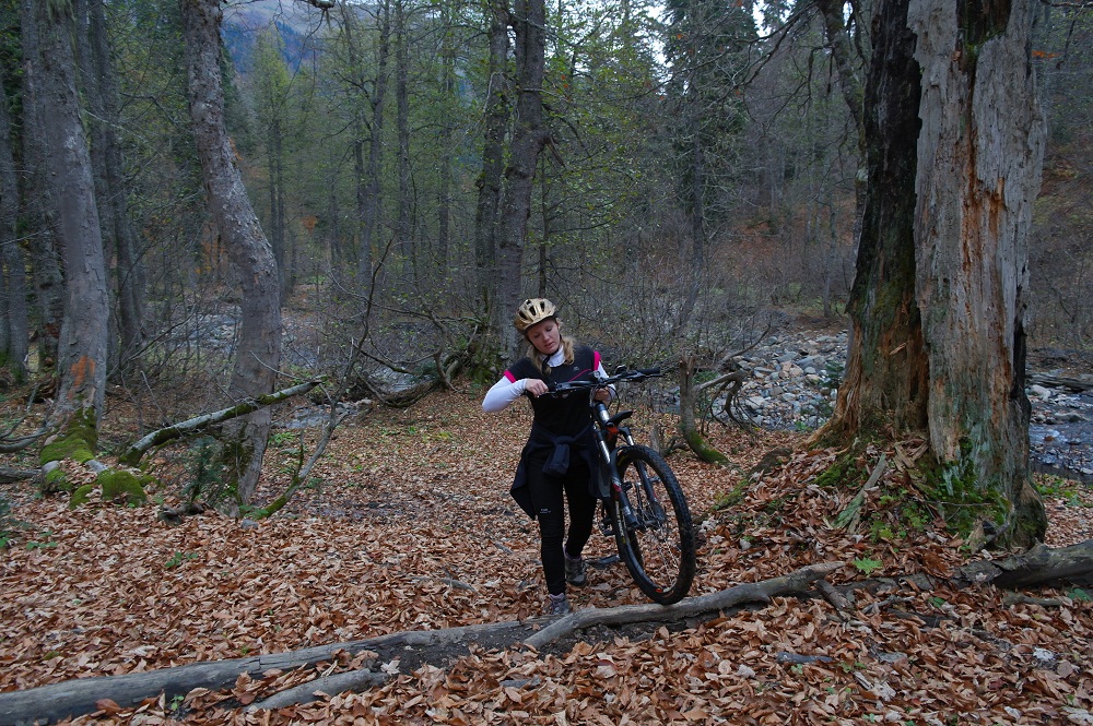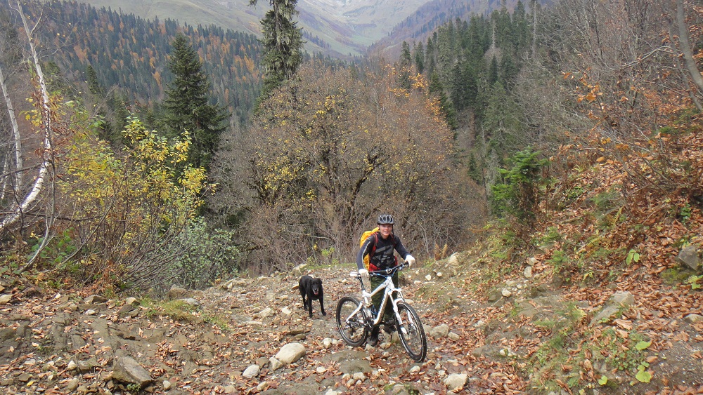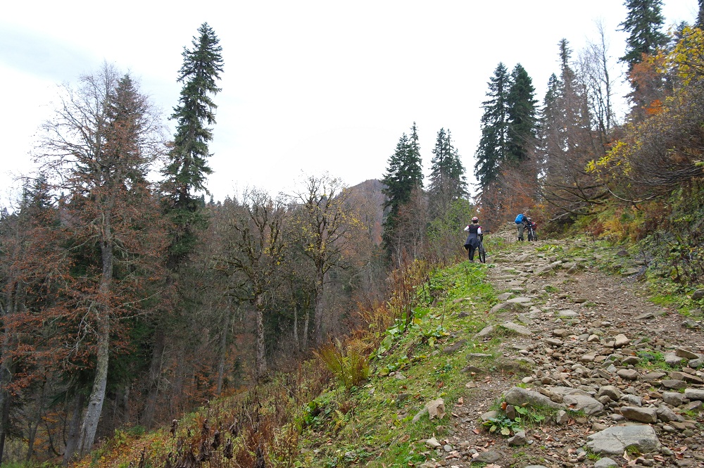 Мы оставили вещи и поехали на оз.Мзы. Озеро находиться на высоте 2000м. над ур.моря в зоне альпийских лугов. Уже был обед. Лесники сказали что мы до темна не успеем и что на великах туда не реально. Но тут вспоминаеться фраза Сереги Сумина из отчета про Непал "....но, мы то с вами знаем, что там где трудно пройти пешком, на велосипеде легче, (шутка, еще труднее)"