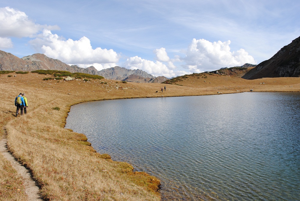 Дорога в долину 7 озер:Наш трехлапый друг, который из Ауадхары ходил и на Мзы и на 7 озер с поломанной лапой: Обалденное место для пешего похода, там бы зависнуть на несколько дней и погулять по этим озерам и долинам, просто сказка. За первой серией из 4 озер идет тропа вдоль которой еще целая серия из этих чудес природы, но туда мы уже не пошли. На самом большом озере мы покупались и устроили небольшой перекус.