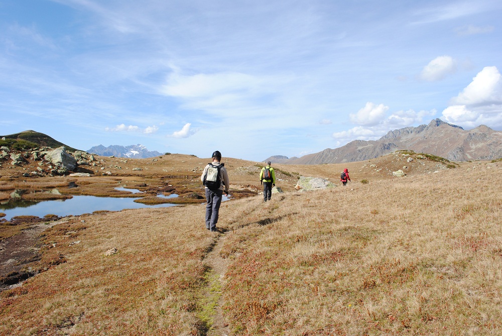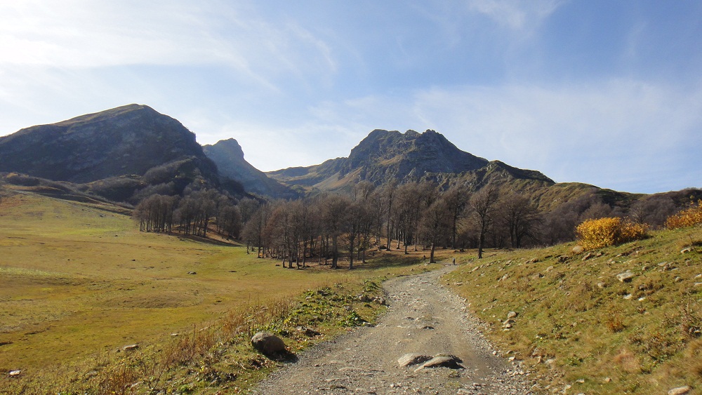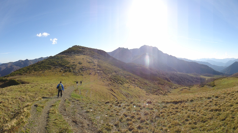 Перевал Анчхо:Виды с перевала Анчхо:Но самое интересное было только впереди. Спрятали (ну это с натягом) велосипеды. И пошли далее пешком, предстояло набрать еще 400м высоты и около 5км чтобы выйти к долине 7 озер. Сама дорога (тропа) словно создана для пешего туризма, идешь и просто наслаждаешься. Вокруг открывается изумительный по своей первозданной красоте вид на Кавказские горы и главный Кавказский хребет. Воздух наполнен ароматами горных трав и цветов.