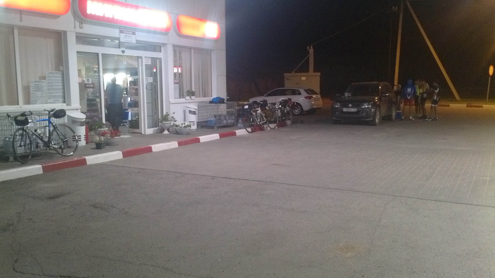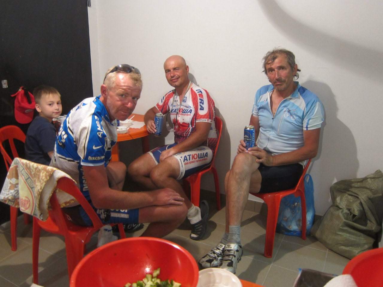 Пункт располагался на территории кемпинга. Частые посетители - водители- дальнобойщики. Хозяин сего заведения с уважением относится к велоспорту и дружен с В.А. Комочковым. Нашим участникам были предоставлены 2 домика: 4 комнаты. Каждая на 3 чел. с частичными удобствами. Душ в другом помещении. Все достаточно скромно, но нас вполне устраивало. Накладок не было. Места всем хватило. Кто-то поспал 1,5 ч. и уехал, а кто-то только приехал. Также участникам были предоставлены бесплатные комплексные обеды. Все что сверх "нормы", платно. Все было приготовлено "по-домашнему" и много :thumbsup: