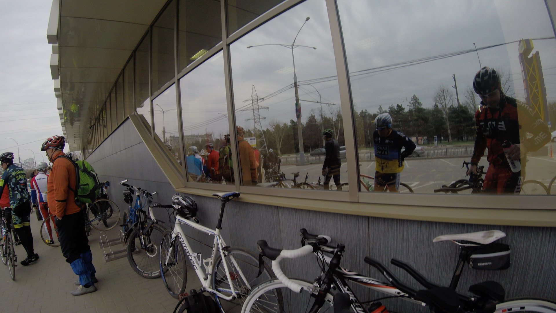 … «Проглоченная смешилка». Подъезжая к Старовеличковкой решил остановится на первой попавшейся автобусной остановке, но не тут-то было её уже заняла первая половина нашей девятки. Думал я: «о-о-о, заняли мою остановку», после дождавшись остальных передохнув и коса смотря на мастерскую с надгробными плитами «для тех кто не прошёл бревет» почапали дальше. Ехали вместе по посёлку, ни что не предвещало беды и вдруг меня стало распирать от впереди едущих путников, смеялся до слёз без остановки, Андрей в бахилах был похож на Деда Мороза, который во всём своём костюме, без посоха, едет с нами против ветра (галлюцинации), Александр в обтягивающих лосинах и развивающемся на ветру зелёном поларе то же выглядел не стандартно (поехала крыша у меня), ехали как группа пи… и так я долго смеялся пока не решился обойти группу и ехать первым…