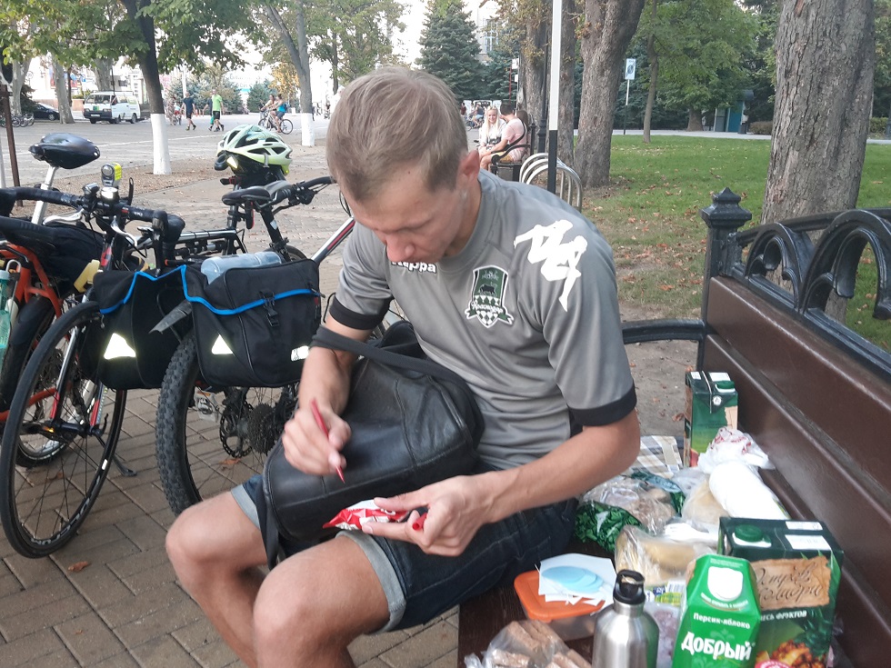 Решил в Новомышастовской хорошо отдохнуть, охладиться и начать наконец поедать энергетические батончики, которые плавились в кармане джерси уже второй день. Осилил только половину батончика. У него был нейтральный вкус, но даже он мне казался омерзительным. Я запихивал его в себя насильно. Меня тошнило от его запаха. Попробовал другой батончик с протеином. Это было ошибкой. Никогда, никогда не приобретайте батончиков с шоколадом или шоколадным вкусом, даже если в них дофига протеина. Видимо они придуманы специально для тех людей, которые страдая от лишнего веса, борются с ним, посещая фитнес-залы, но не могут всё равно себе отказать в употреблении «вкусняшек».