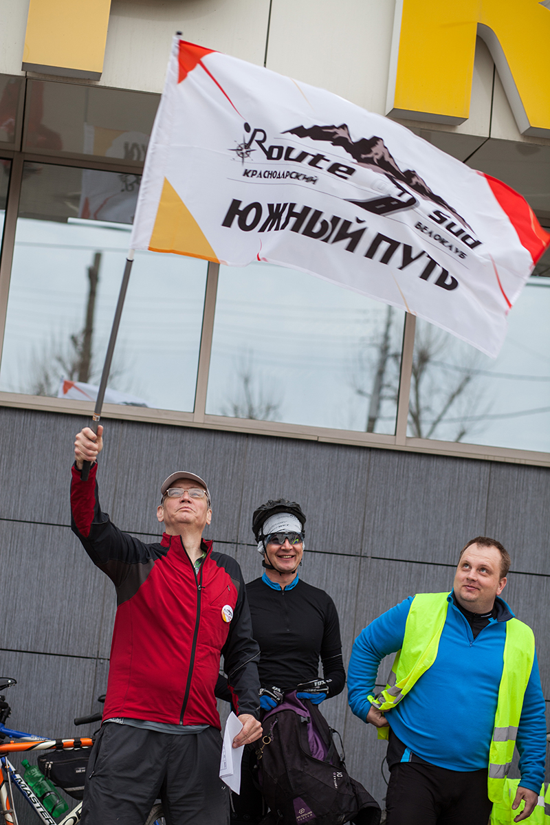 Окончательно подготовившись к бревету, участники готовятся к старту. Сергей главный организатор дает отмашку к старту