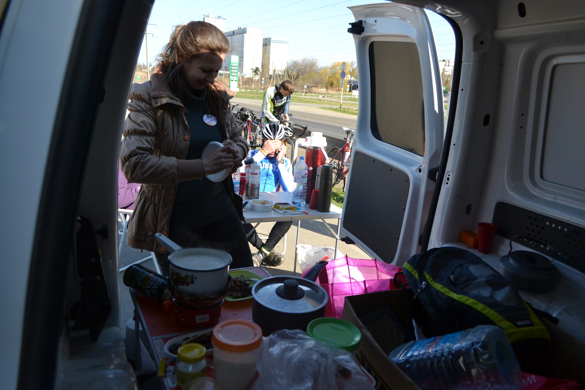 с кп-3 немного не повезло. Каша на мне закончилась, попросил волонтёра купить мне что-либо мясное. но так как разогревали достаточно долго, дожидаться не стал и уехал сухим (не считая 2х стаканов чая с сахаром и кусочка шоколадки).