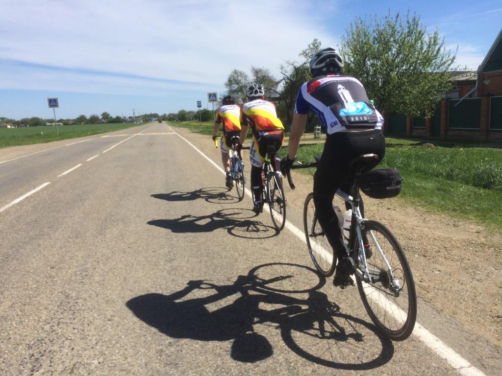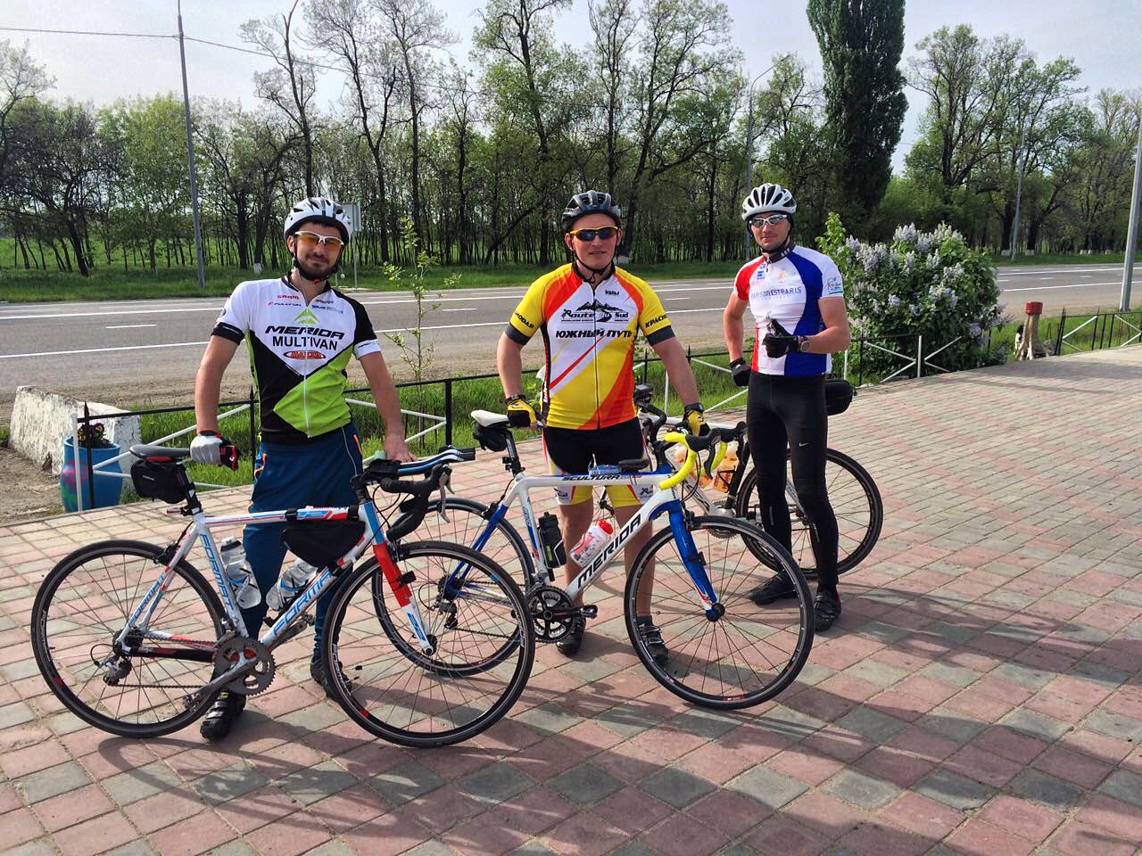 Итак, старт был дан, и все покатили. Почти до Тургеневского моста все участники ехали более-менее в общей и группе и только на подъеме группа стала заметно разделяться. До Энема ехали с Юрой (Joz). Ехалось очень легко, видимо ветер нас подгонял, потому что когда повернули сразу стало тяжелее. Но сил еще было полно, а ветер не сильный, так что поехал вперед только чуть снизив темп. :velo3: После Шенджия начались всеми любимые Шенджийские холмики. :palm: Никогда не проезжал их в эту сторону. Всегда только в сторону Тахтамукая, и всегда уставший, но кое-как преодолевал. А тут… в ту сторону он гораздо круче. Абсолютно свежий я еле-еле забрался на первый же =-O , где и догнал остановившегося Юру, который уже тут собирался перекусить ))) Посовещавшись, решили отложить перекус до Адыгейска. Поехали дальше. Ехал так медленно, что думал, что тут уже безнадежно отстану от всех, но обошлось (группа, в которой я ехал 300 так и не появилась на горизонте) Да и Юра не намного оторвался, и когда я заполз на последний подъем сбавил темп и подождал меня. Дальше пересекли трассу, проехали Адыгейск и стали искать удобное место для остановки. Такое место нашлось только в следующем ауле на автобусной остановке, где мы и перекусили :beer: . После этого Юра поехал быстрее, а меня как раз догнали Андрей (Tarantino) и Юля (july75). Юля как обычно ехала в своем стиле – немного быстрее, но чаще останавливалась и мы поехали в компании с Андреем. После поворота на трассу пейзажи поскучнели, а дорога выпрямилась, что мне было на руку. Почему-то очень не терпелось доехать до Рязанской. После прошлогоднего бревета «Майкопский», на котором мы там волонтерили с Серегой (Сергей_К) и простояли больше 10 часов у меня эта станица на любом маршруте как путеводная звезда. Перед Рязанской довольно крутой и затяжной подъем, в который опять приходиться вкручивать, И опять быстро нахожу самую легкую передачу на своем велосипеде =-O . В Рязанской останавливаемся в магазине, пополняем запасы воды и перекусываем. Продавщица говорит, что уже много велосипедистов проехало, но нас за время остановки никто не обгоняет, Андрей по этому поводу шутит, что мы последние, но мы-то точно знаем, что это не так.