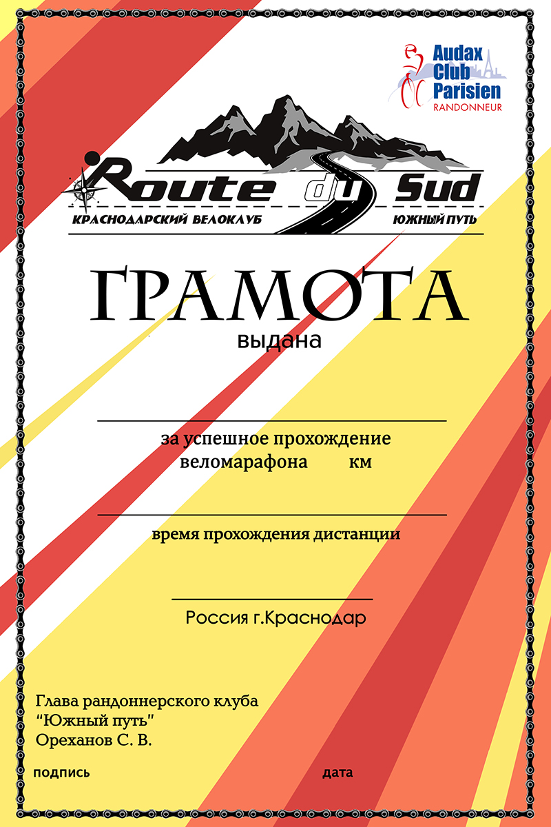 хотя сейчас подумалось, что лучше печать без имен, но с названием бревета, т.к. дорога ложка к обеду) вручить бумагу на финише куда приятнее, чем через время, наверное