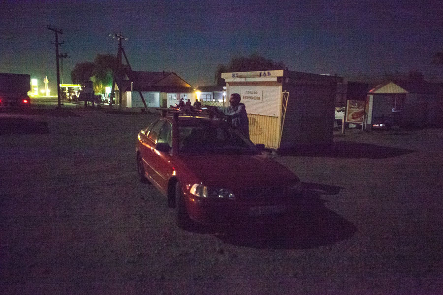 После Гиагинской на 305 км трека. Там где выезд на трассу. Там вроде бы и заправки и фонари
