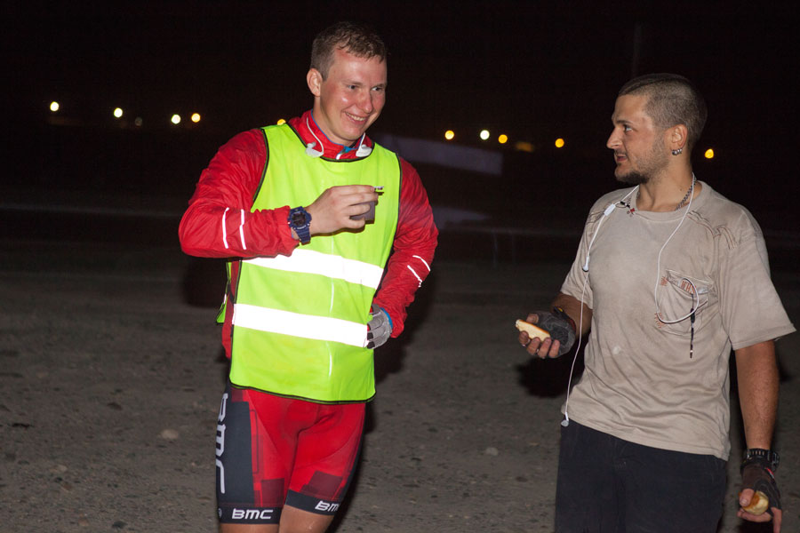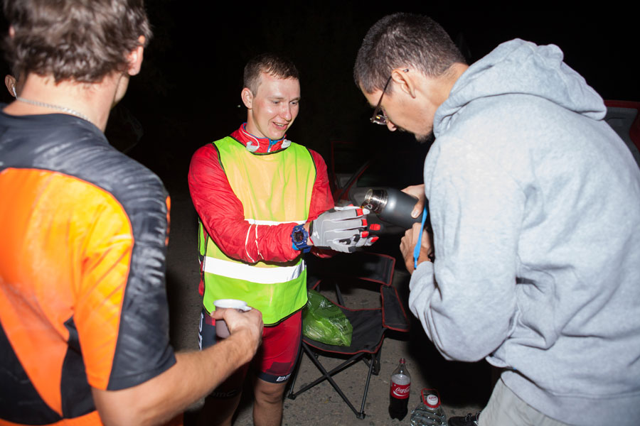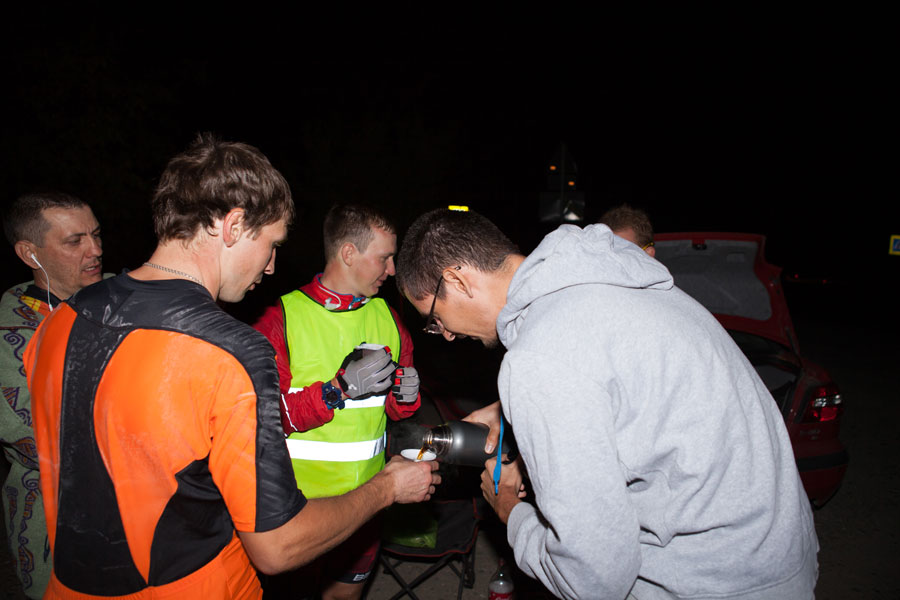 Вторым испытанием был все тот же вездесущий холод. Как будто специально я отдал свои теплые вещи волонтерам на старте и они ждали нас на 325-ой километре. Но холод начался гораздо раньше и примерно 100 километров я жил мечтой добраться не до финиша, а до волонтеров. Меня трясло, продувало. Не сказать, что я такой уж мерзляк, но может вкупе с усталостью холод чувствуется в два раза острее.