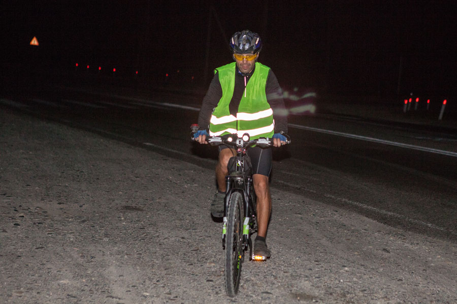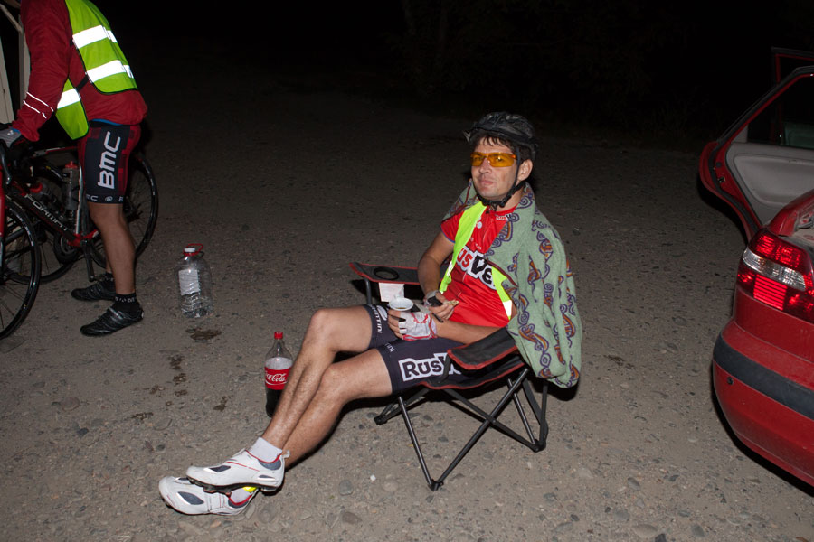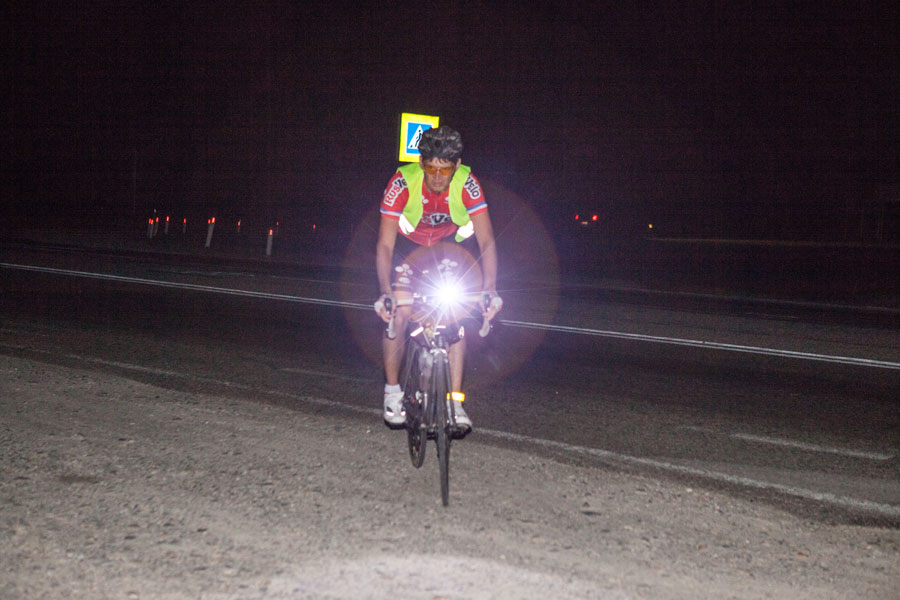 Долго я добирался обратно на маршрут и до волонтеров. Но я все-таки сделал это. Мне в тот момент понравилось одно осознание. Я нахожусь фиг знает в какой глуши, светит полная луна, тишина. Такое умиротворение. Во всех хуторах свет нигде не горит. Люди спять. И это все внешний мир. В нем все хорошо и замечательно. А весь ад-то у меня внутри. Мне холодно, у меня все уже болит. И куча мыслей о том, когда все это кончится и что же я вообще тут делаю. Я. Человек со свободным волеизъявлением. Сам загнавший себя в эту ситуацию. В этот момент я реально даже сойти с дистанции не мог. Ни людей, ни машин. Мог просто сесть, попить воды, в туалет сходить, шоколадку скушать или ехать. Все. Весь мой выбор. Человек с ограниченными возможностями. И вот чтобы им не быть, нужно вставать на педали и крутить, чтобы стать человеком с железной волей.