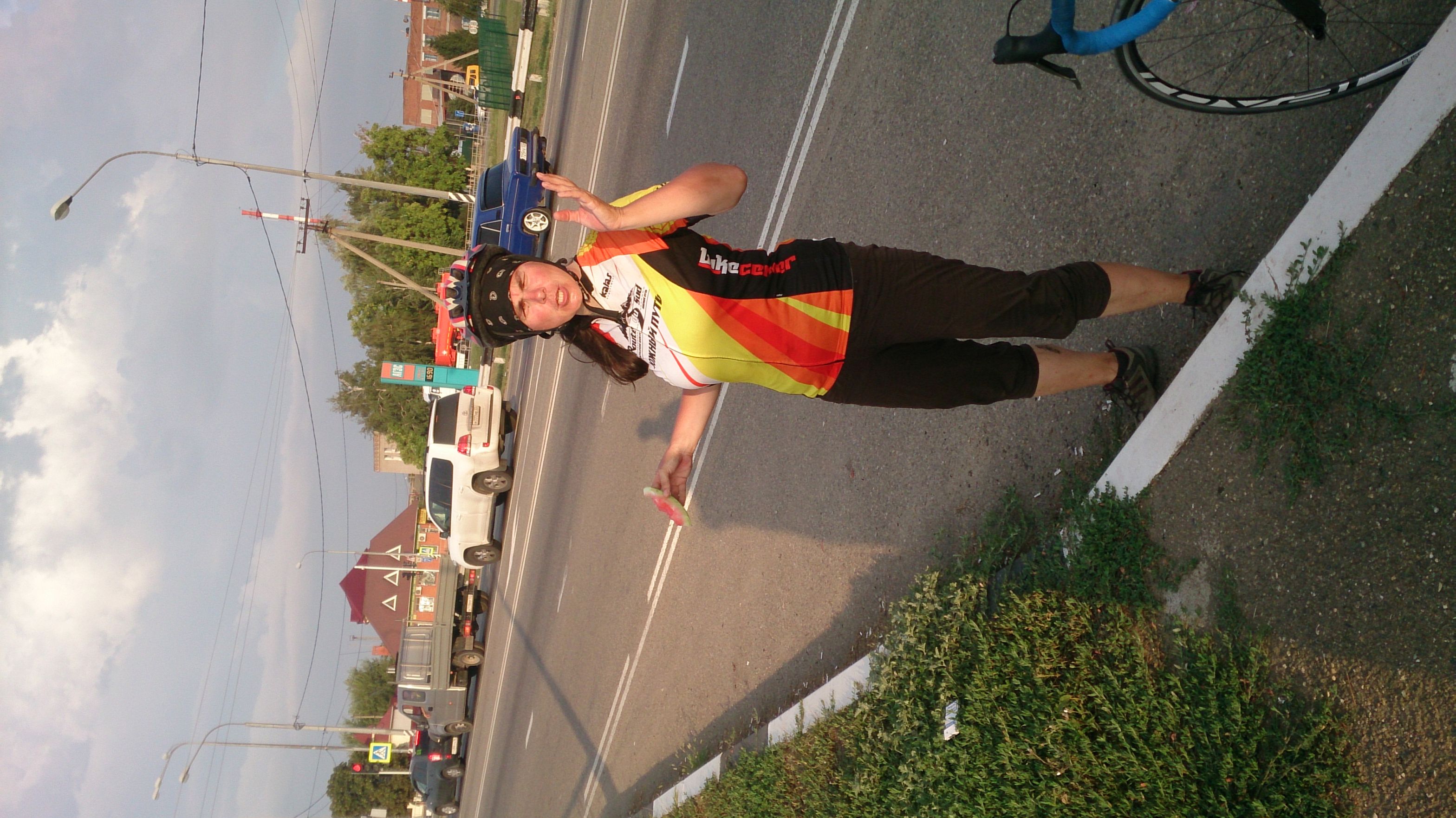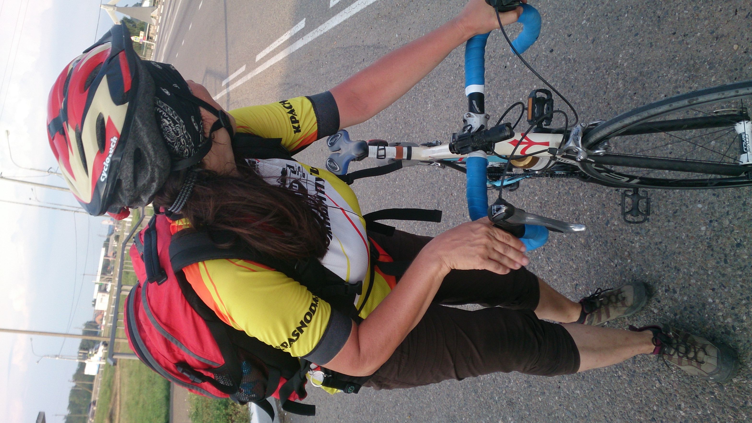 Едва выехали со старта, у меня пробилось колесо (поставила плохую камеру, "суперлайт", которые пробиваются от плевка). Пока меняла, все уехали. Догнала краснодарскую команду за Азовом и уехала вперед, догонять еще кого-нибудь. Долго никто не попадался.