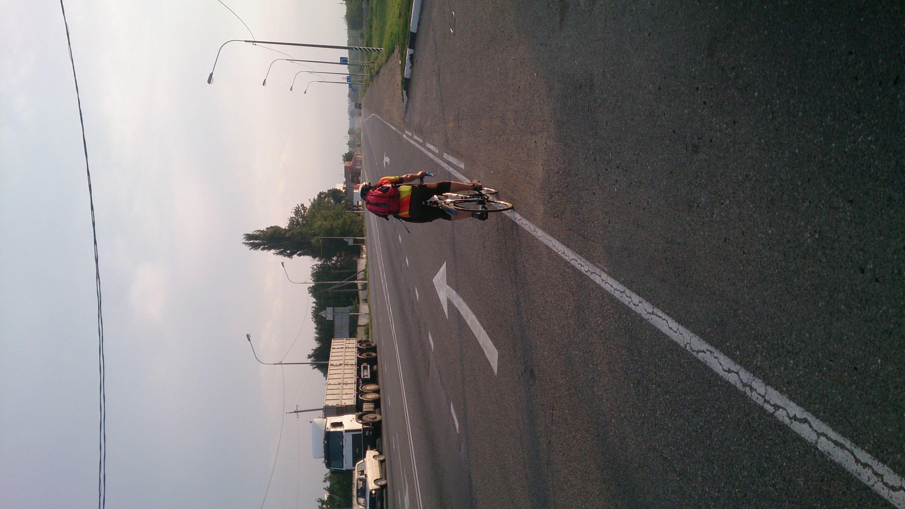 Фактически можно было ещё доехать держа 20 км в час... мы бы смогли... почти уверен... но полное отсутствие сна у меня за два дня и одну ночь ясно дало понять - ещё 30-40 км и я просто буду в кустах... Уже не мог держаться ровно на асфальте постоянно сьезжал на щебень лишь задумавшись о чём то...