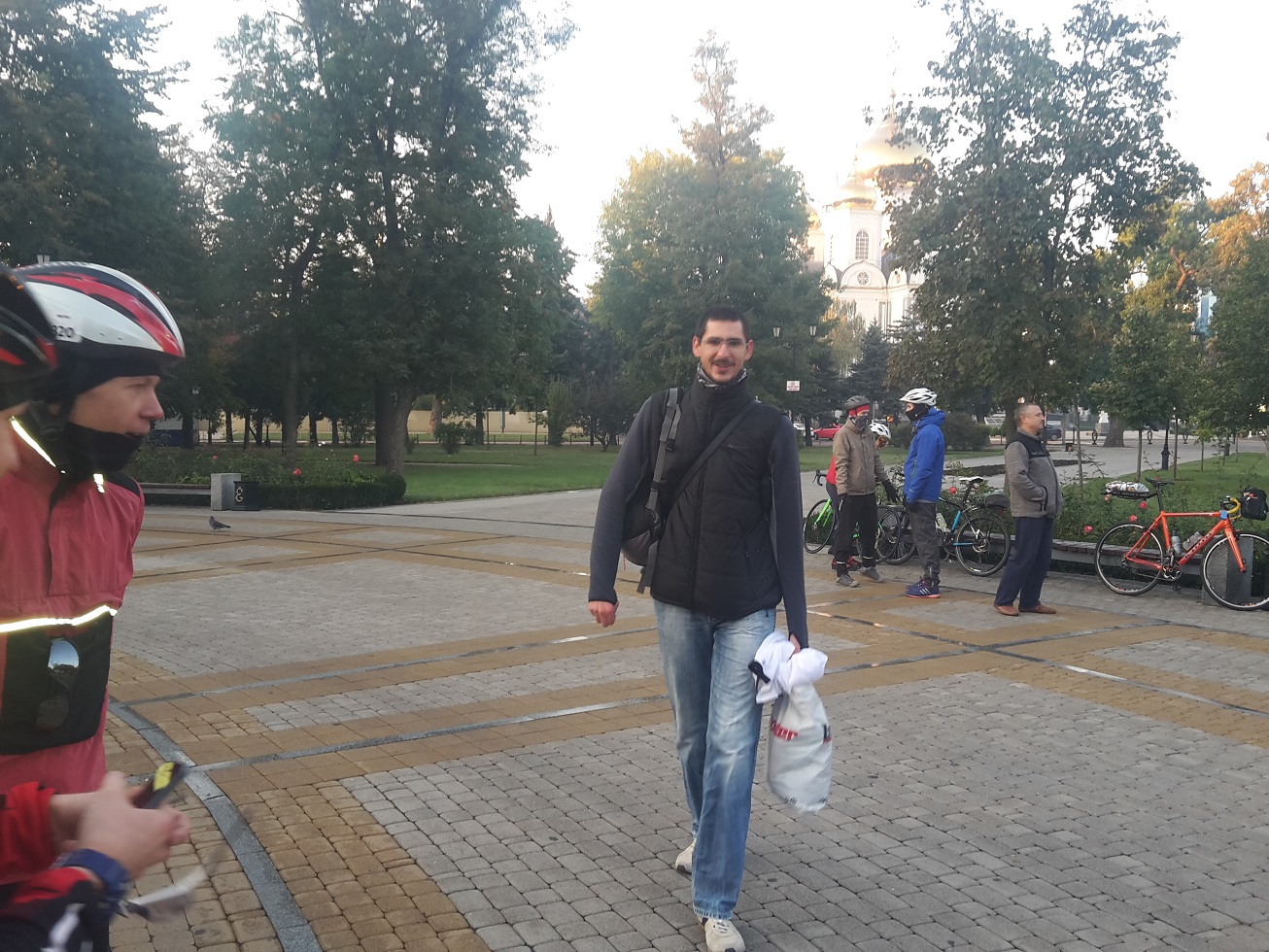 2) всем участникам бревета нужно сделать осознанный выбор: ты либо умеешь грамотно ездить в группе - тогда держись в группе. Либо ты ездок-одиночка - тогда держись ото всех подальше. Спасибо неизвестному МТБшнику, которому захотелось меня обогнать строго в тот момент, когда я переезжал рельсы, да еще и с правой стороны. Уходя от столкновения с ним я вырулил передним колесом точно в рельсу и завалился. Зачем вообще обгонять кого-то на рельсах? Все лютые гонщики приглашаются на гонки, там можно реализовать свой потенциал. Ну да ладно, всего-то порвал рукав на своей ветровке, не велика потеря.