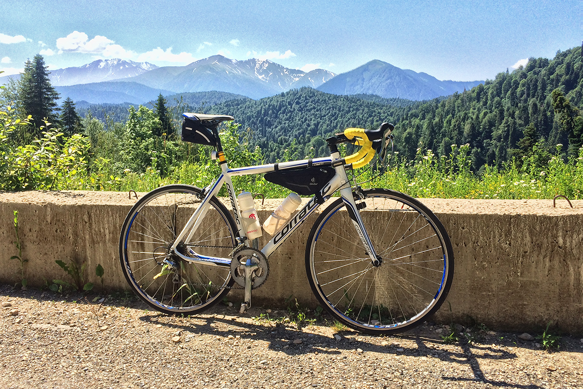 Влад бодро раздавал на холмиках перед подъёмом, едва за ним поспевал, но на основном подъёме он выбрал слишком бодрый темп, так как опыта в такие горки у него не было. У меня на самых сложных километрах дела шли хорошо. Радовался жизни, смотрел по сторонам, катался зигзагами и поджидал Влада. Здесь нас к нашему огромному удивлению добрал Николай Рябов. Вот уж железный человек. В гору он шёл мощно, одним темпом без всяких зигзагов. Прокатился немного с ним, но потерял Влада. Дальше решил сбавить темп. Несмотря на это метров за 300 до конца подъёма так подурнело, что пришлось на 20 секунд остановиться и размять спину. Вода к этому моменту уже кончилась, ручейки манили, но я ими пренебрёг. Не хотелось останавливаться, ан нет — всё равно пришлось.