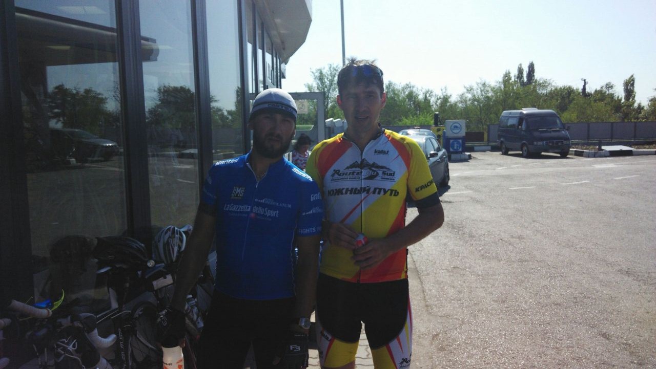 Гамаюнов и Нильс улетели вперёд к финишу, собираясь гнать без ночевки. Наши планы были куда скромнее, втроем решили заночевать в Пролетарске (360км) а Боря планировал ехать ночью неспеша.