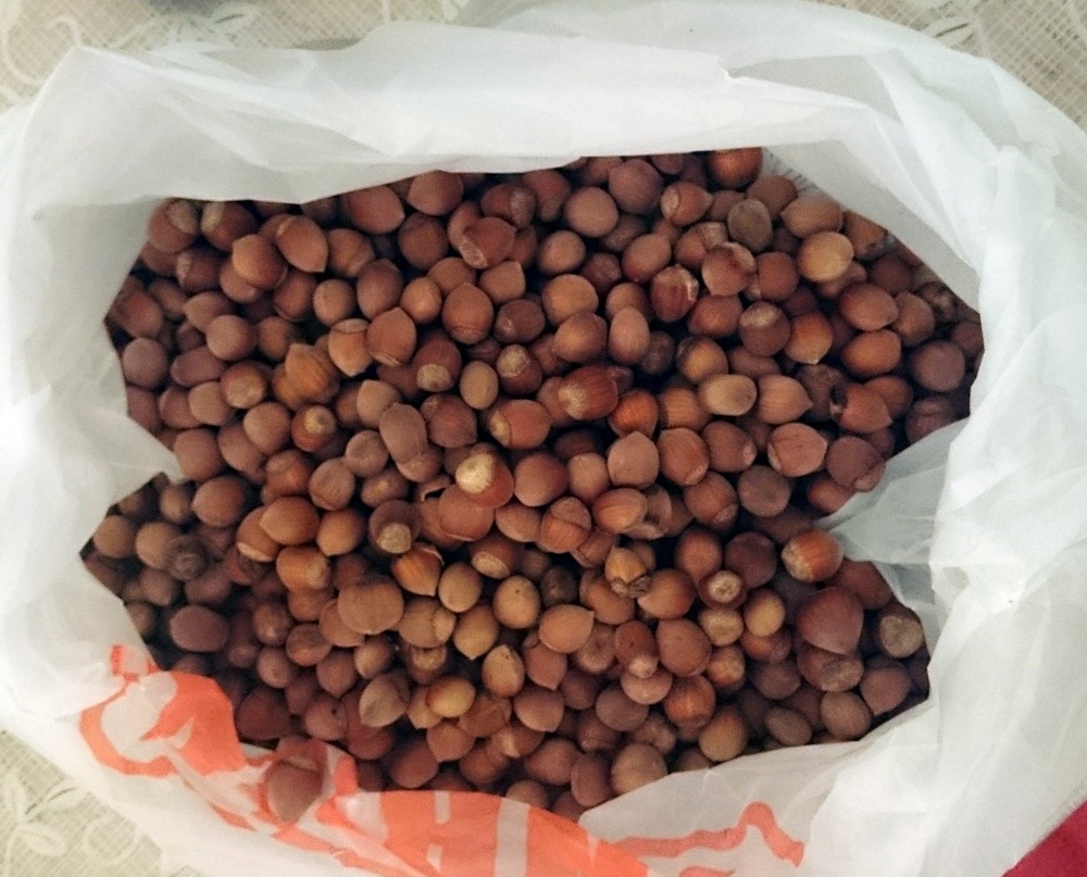 дорога - автобан, орехов куча, обошли 3 дерева, набрали по пакету: