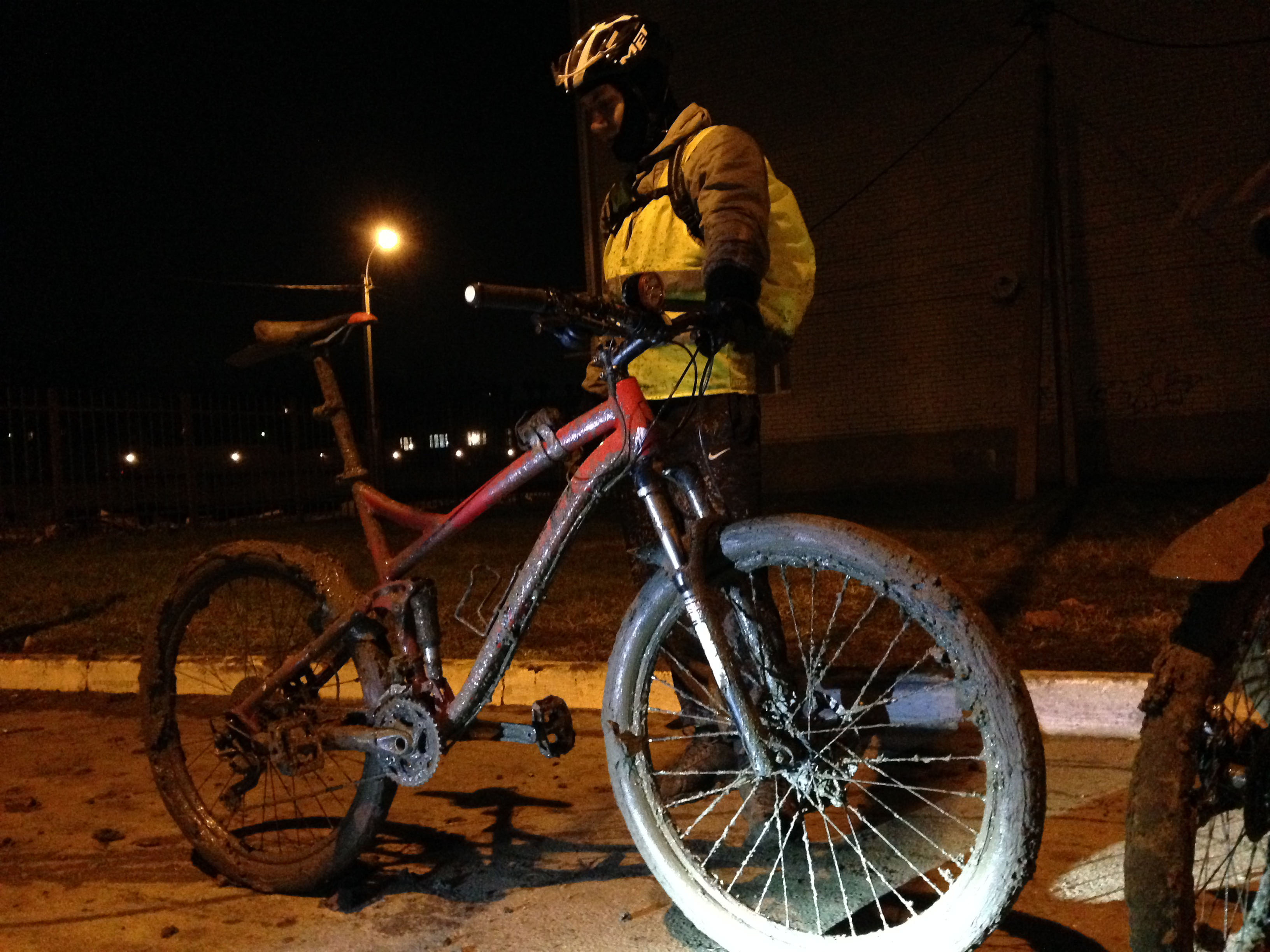 На обратном пути хотелось крикнуть попутным автомобилям «Я не бомж! Я не спал в канаве. Я — велосипедист. Вот эта грязная штука подом мной велосипед!».