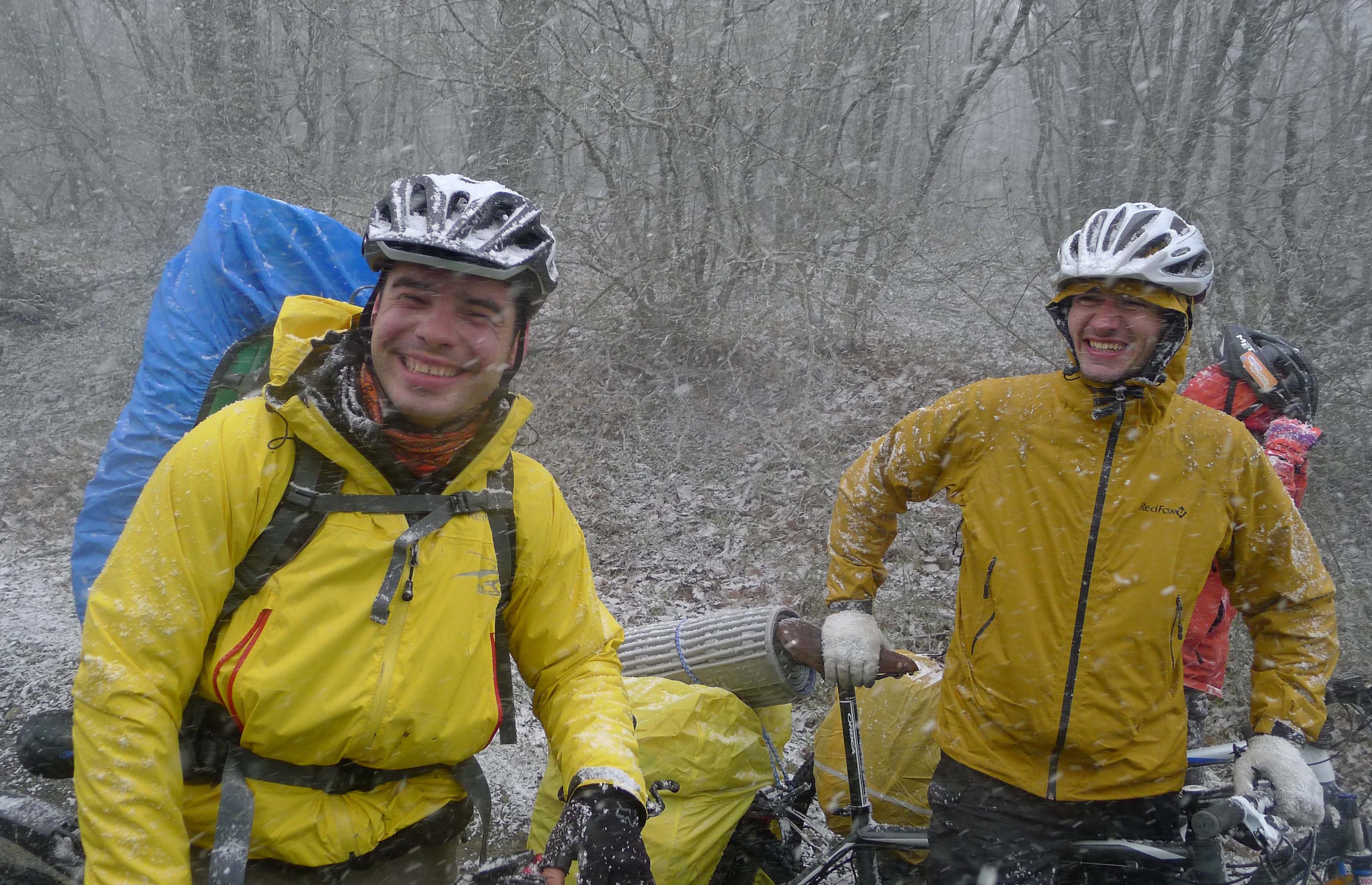 Ну чтож, скатали мы несмотря на погоду отлично, нам повезло больше чем бреветчикам. В субботу сопровождал снег и легкий попутный ветер, ехалось легко и не сыро. Экипировка помогла, практически все время был в лыжных перчатках например. Утриш еще никогда таким не видел, все деревья в снегу. Просто сказка. Вечером дурачились как дети под снегом. У Камчадалки супер фотки получились. А сегодня вообще лафа. Хоть и холодный воздух, а солнце все время и легкая облачность. Крутилось не пожаре, кстати, на удивление легче, чем когда либо. Быстро проезжали. Вчера как то купаться совсем не хотелось. Только с утра искупнулись. Море и камни все в снегу, ну как такое пропустить. Ночью было -5, (на М.Утрише, почти в апреле =-O :-D ), но все взяли теплые спальники предусмотрительно и все было классно. В общем, минусовая температура нас спасла, если бы был +1 или 0 и холодный дождь мы бы там офигели. А снег был наоборот чудесный и вдохновляющий.