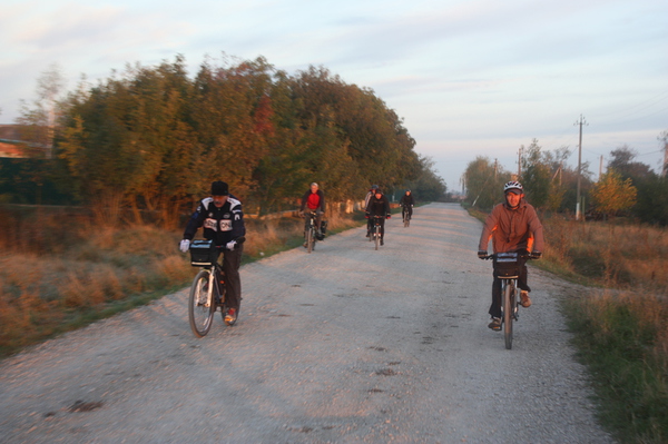 Поездка замечательная! Большое спасибо Командиру за организацию и всем участникам велопохода. Отдельное спасибо Александру за отличные фото. Небольшое описание. Стартовали где-то в 6:20, было темно, холодно до +1 град, пальцы на ногах и руках стали замерзать. Возле переезда в Суповском нас ждали опоздавшие участники Михалыч и Дима, которые сошли в Северской. В Новодмитриевской возле магазина согрелись чаем и подождали Володю (voland66). Подъезжая к Северской и далее, солнце стало припекать и пошли холмы с довольно крутыми подъемами, отличными видами и хорошими спусками. Все это продолжалось так до Холмской. В Ильской сошел Game of Life, поломалась педаль. Повернув в поселке Светлогорский поехали в горную местность. В Эриванской были около 16:00. Далее поехали по лесной дороге с многочисленными лужами и двумя бродами. В Шапсугской посетили источник, дело было к закату, и мы поехали в Абинск решив, что в темноте будет тяжело ехать по неизвестной и очень гавнистой дороге с перспективой успеть на ночную электричку в Новороссийске. Очень понравился участок после Светлогорска до Шапшугской, исключая перевал там равнина или спуск, и постоянный спуск по асфальту длиной более 16 км в Абинск. В Абинске понравился уютный и малолюдный вокзал. За поездку на всех было два прокола. Думаю, чтобы полностью, до Новороссийска, преодолеть в этом направлении маршрут нужно выезжать еще на два часа раньше или пробовать идти в обратном направлении. Ну, и напоследок, OSV извинился за отсутствие говен