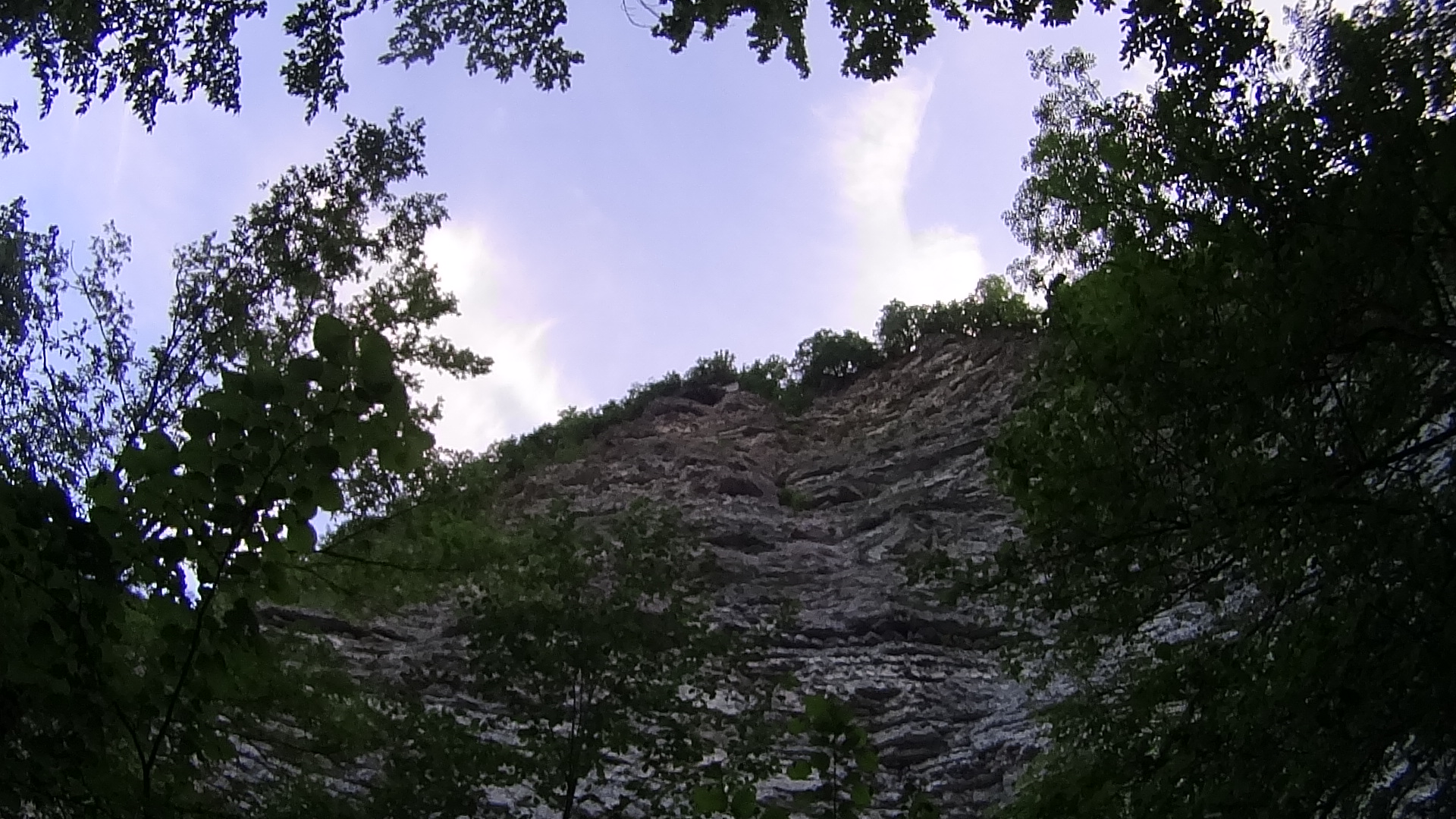 Отвесная стенка высотой метров 50. Идеальное место для самоубийц и парапланеристов