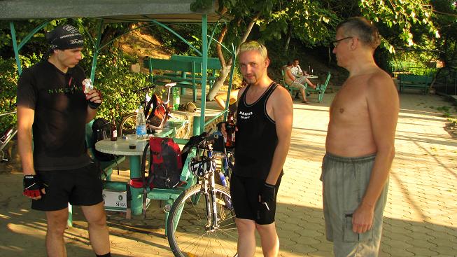 Доехали отлично, Виктор обе камеры проколол и сошел с дистанции, 136 км. накрутили, с погодой повезло, сейчас купаемся в море, большинство решило остаться до вторника, а кто не может остаться вернется на семичасовом электроне из Новороса.