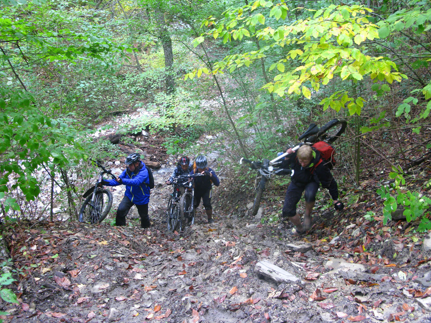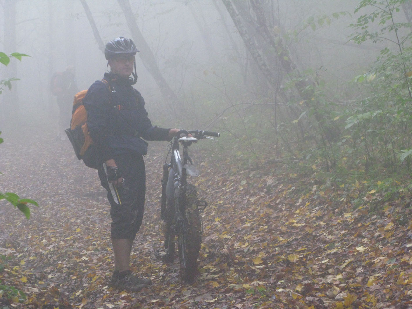Залогом прохождения маршрута в столь короткие сроки было именно то, что маршрут был знаком, вся эта жесть ожидалась, все были в курсе, что им предстоит и по времени я расчитывал как должны проходиться участки, но если мы не успевали, то делали меньше остановок, поэтому пик-ниика в этот раз не получилось. Единственное обидно, что был сильный туман и вида с хребта не открылось, собственно бонуса ради которого стоило туда лезть. На буксире я немного Шурика вез, но немного отдохнув и поев он поехал еще быстрее меня