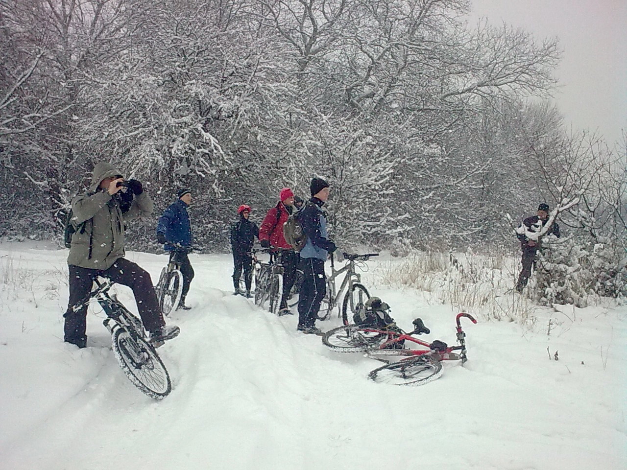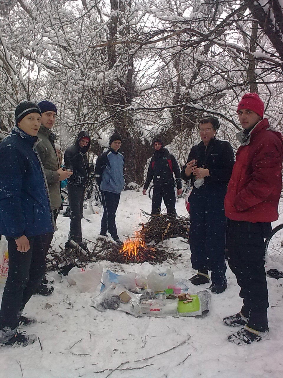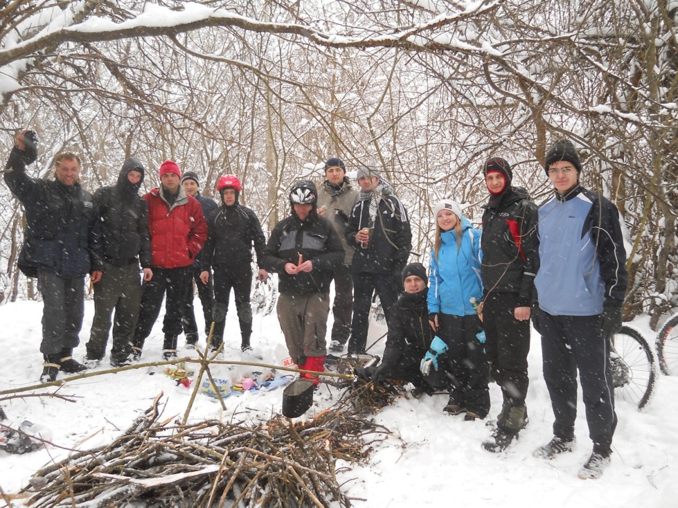 Отличная вышла поездочка! Размял булки после зимнего матраса) Погода супер - тепло, снежок и Солнце не жарило. Самый веселый участок был от поселка до самих озер, что ему придавали колеи дороги+снег+невидимость рельефа. Поэтому все активно старались изображать падающих пьяных велосипедистов, либо просто пеших прохожих. Что в общем-то и придало поездке +50% нагрузки. Отличная компания, чувствовался дух велокубанской ПВД, за что всем спасибо :good: . Еще катухе придал "запах" настоящей многодневной ПВД костер с сосисками, салом и чайком из топленого снега в котелке и Майоровских крымских чудо-трав :fly: