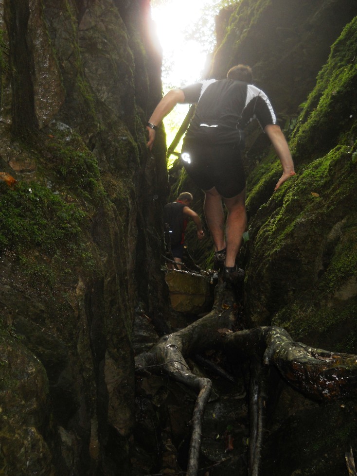 Едем в электроне. ОСВ слукавил как и всегда ;-) Ни фига это не "лайток"!!! Почти все возвращаемся с материальными потерями: ОСВ потерял рацию, я убил до смерти велотуфли, Кевин и Свифт извели магазин велокамер. Но каньон того стоил...