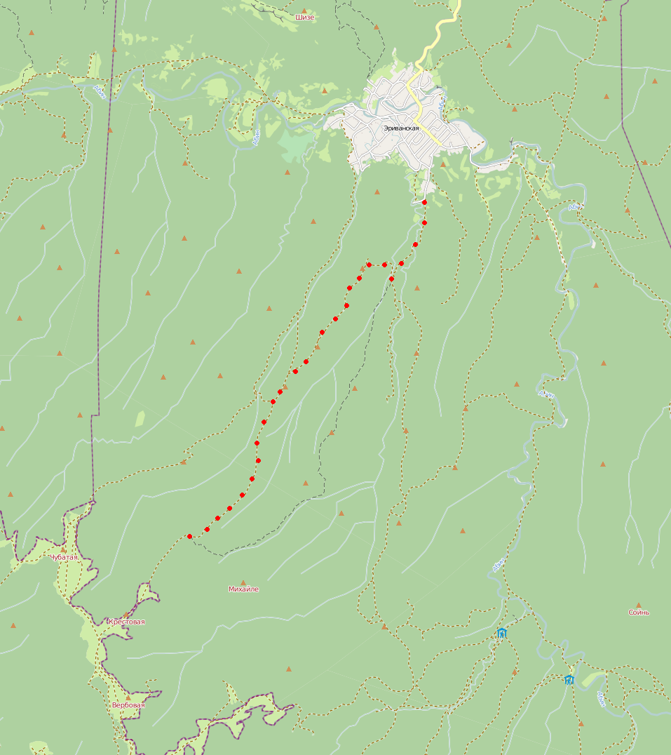 От разъезда Эриванского до ст. Эриванской по освальду/гравию - ок. 20 км. Один умеренный перевал.