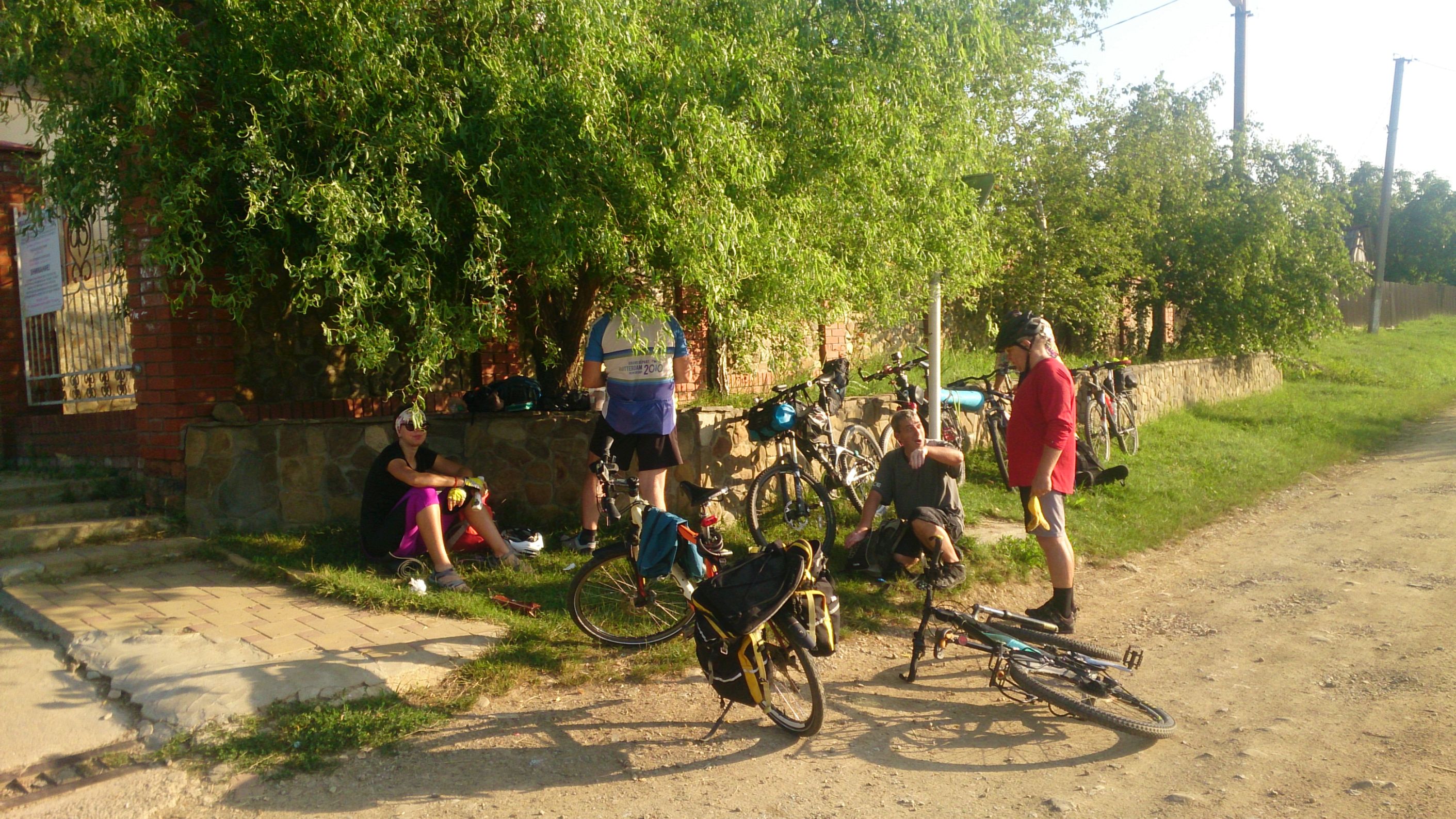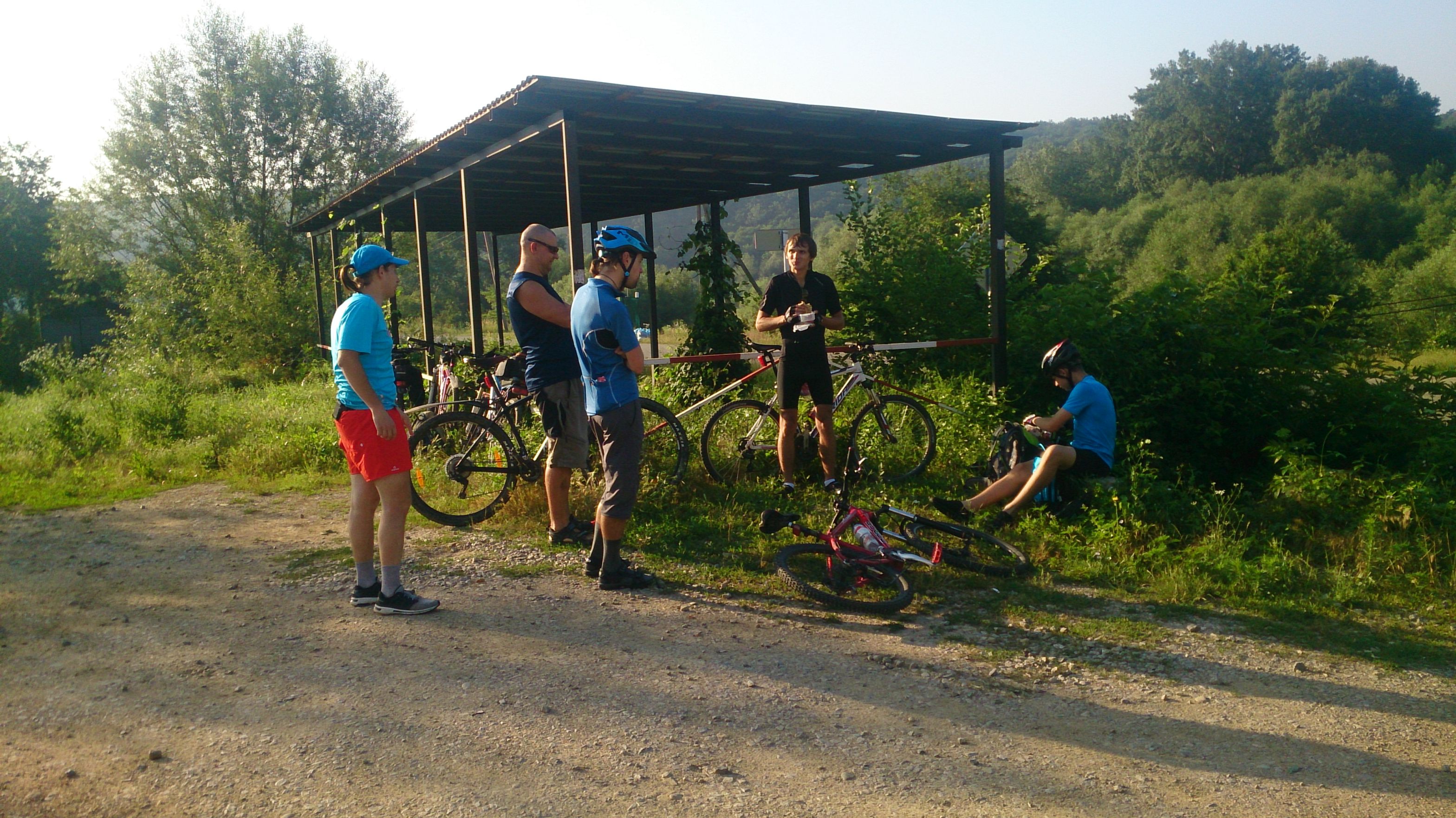 Большинство высказались ехать по трассе, т.к. уже начало накатывать ночь. А лазить там по ночи, большинство не захотело. На выезде из Пшады, у магазина, увидели Andy_M, ТоварищаВела и VEERA Они решили ехать через Колбасинову. щель. Мы не стали их ждать и укатили.