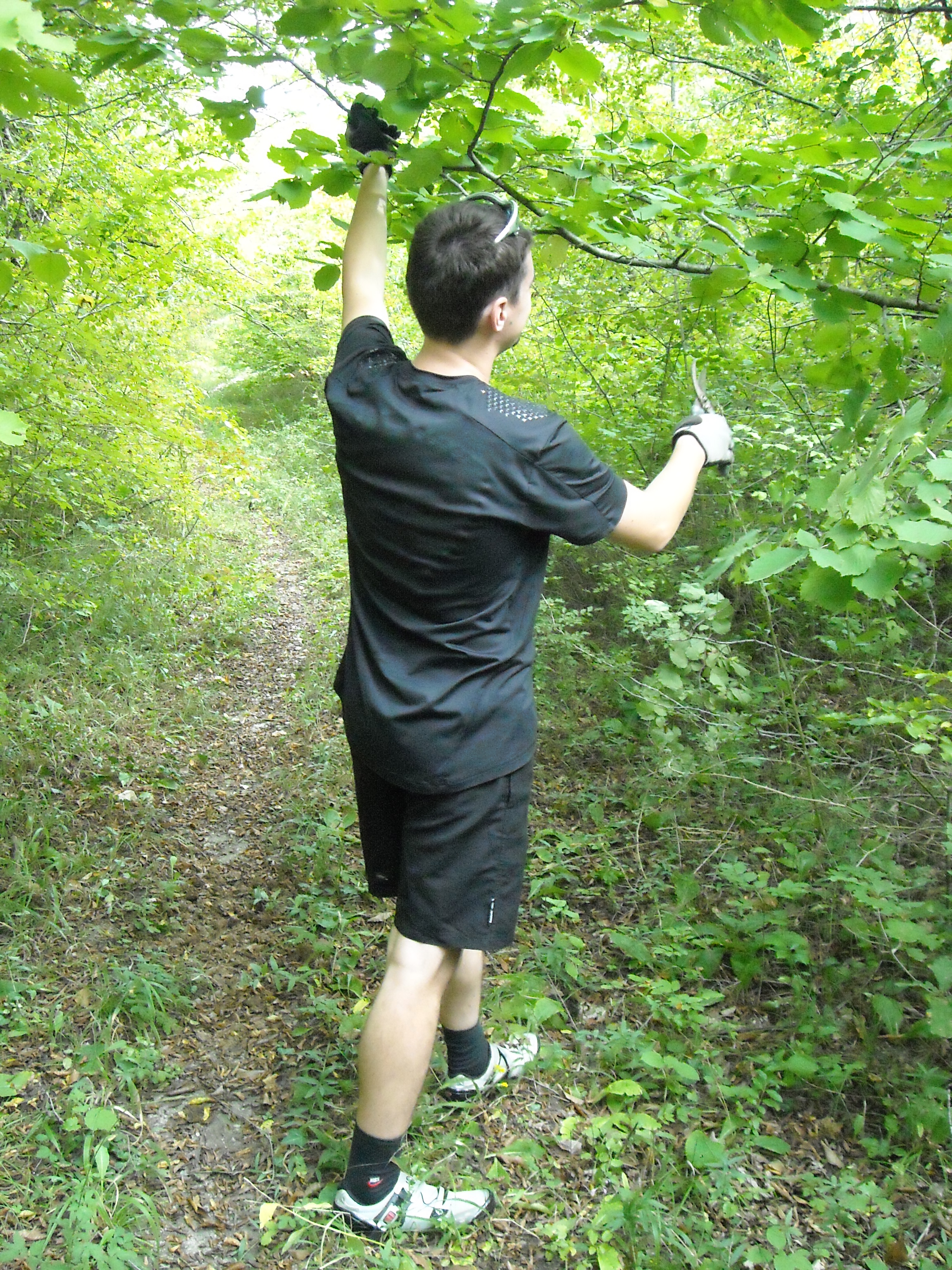Следующий день был посвящен ударному труду. Чудную дорожку по щели Березовской надо спасать. Как с классовым врагом, вступили мы в неравный бой с колючими лианами и деревцами, так и норовящими перекрыть велопуть из Пшады в Прасковеевку.