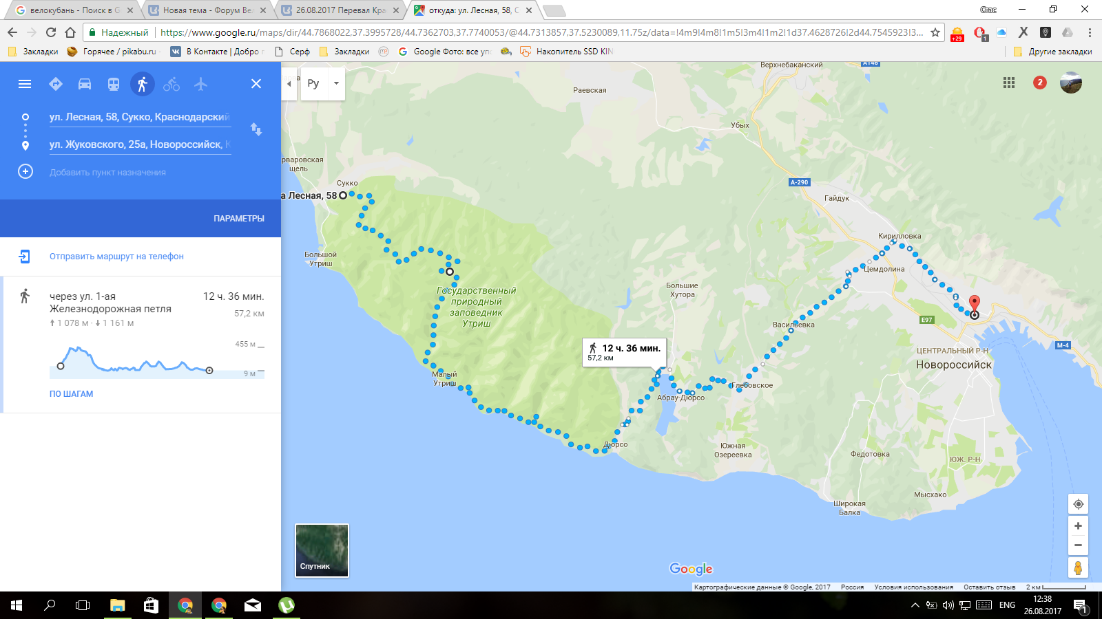 Спасибо за совет, думаю так и поеду. Только в этот раз поездка сорвалась.dimx01 » 31 Aug 2017, 03:39 \$m[1]:в прошлом году в сентябре ваш двухдневный маршрут проехал не без труда но за один день. в этом году решил переделать маршрут и неделю назад прокатился немного по другому... советую от станции тонельной по хорошей грунтовке спуститься в Раевскую, а от туда поехать через лес прям к озеру Сукко, а дальше как по треку. по асфальту выходит два лишних подъёма