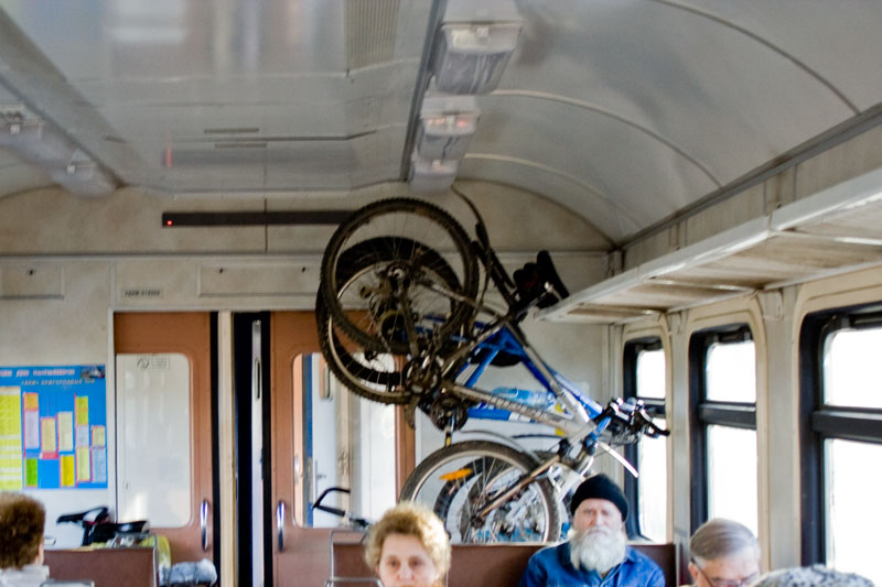 перевозка вела на сиденьях, черевата недображелательным отзовом проводницы, хотя куда страшнее сердобольные старушки каторые едут, как правило, на дачу, вот они и будут потыкать всю дорогу, (ихидным голосом) "вот зачем свой грязный вел на сиденья поставил".. и придется ей расказывать что он совсем еще негрязный, а грязный он бывает после 30км говен (говен лутьше перефразировать), а вот если електрон совсем забит...