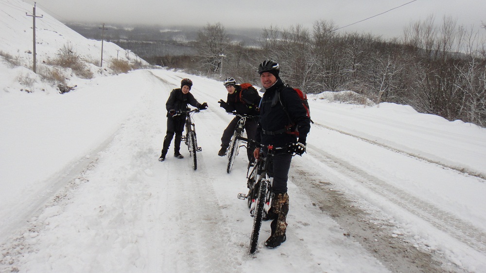Ну а съездили матрасно, 50% маршрута выполнено, забрались только на Медвежью, до Синегорска конечно не поперлись, снега см20, идти с велом напряжно, конечно "зимняя сказка" доставляет ... и... может и надо было, размяться перед работой, чувствую ни грамма каллорий не потеряно, лишь немного адреналина на спуске по снегу с медвежей, носит как пьяного а упасть не боишься, мягко :-D