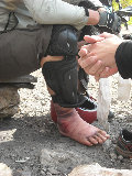видно было что там может быть не только растяжение или разрыв связок, но даже возможно перелом. Похоже Леша усугубил вчерашнюю травму, видно было как ему больно и Лена снова пошла за своей аптечкой. Мазь кетанол возможно немного помогла. Я тем времени достал свою мазь для мышц и суставов помочь Игорю (для которого это был первый велопоход), на нем лица не было, колени и ноги у него сильно болели. Лицо обгорело, руки тряслись, но он все мужественно терпел, не жаловался и видно было, что это стойкий парень, а не паникер, как некоторые.