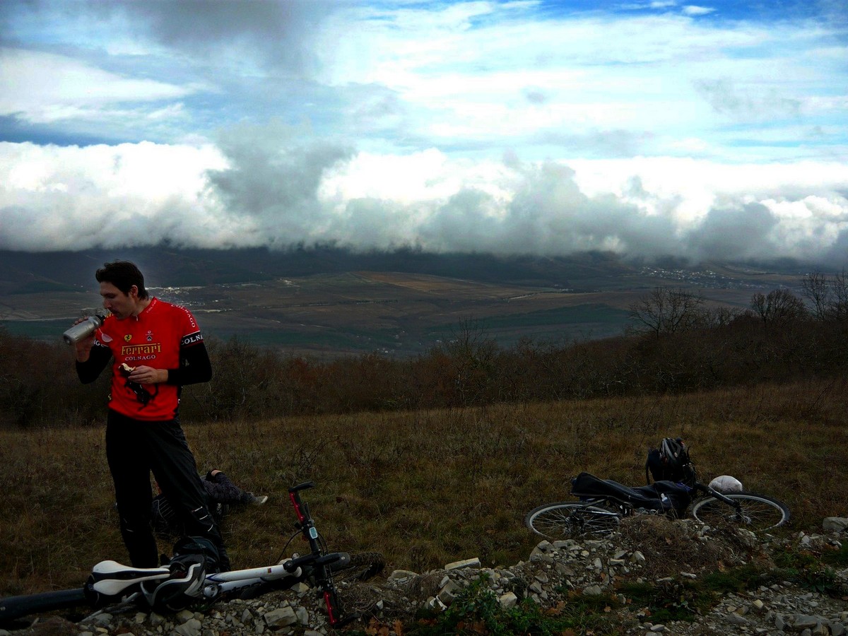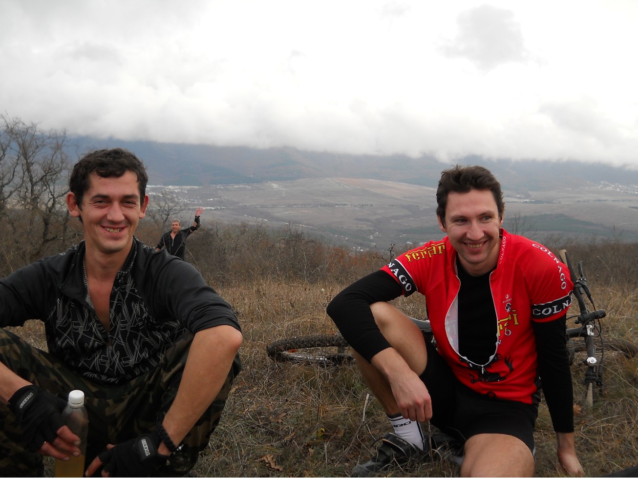 К сожалению, я не смог осилить подъем в 6 утра, хотя и проснулся, поэтому совершил поездку совместно с бегунами. Это оказалось очень непросто, бегуны-именитые лоси ( в т.ч. и Вул), понеслись так, что мне с трудом удавалось на веле хотя бы сильно не отставать от них. По пути встретил испуганного Майка , еще двух ребят, и ОСВ, которые почему-то катили мне навстречу от воинской части. как оказалось, не зря они не поехали по круговому маршруту. Еще наконец-то я увидел Темыча вживую, даже познакомились) Я же решил поехать как положено, по кругу, чтобы догнать кибер-бегунов. Дорога вдоль моря больше не для велосипедистов(( Почти в каждой щели огромные оползни и овраги, а также буреломы из вековых сосен. Приходилось пешком тащить велосипед по буеракам, а бегуны легко перепрыгивали, в одном месте спускались в овраг по веревке. И только уже перед финальным подъемом я смог обогнать вула, и остальных мега-лосей, самым страшным из которых оказался чегетский чемпион) в итоге получился перегруз по потере калорий, и на заплыв сил уже не осталось)) Кроме того, бегуны совершенно не делали привалов, просто все время бежали и бежали, это какое-то сумасшествие)) По итогам решил, что во всякие горные поездки лучше ехать без вела, легче и быстрее получается)