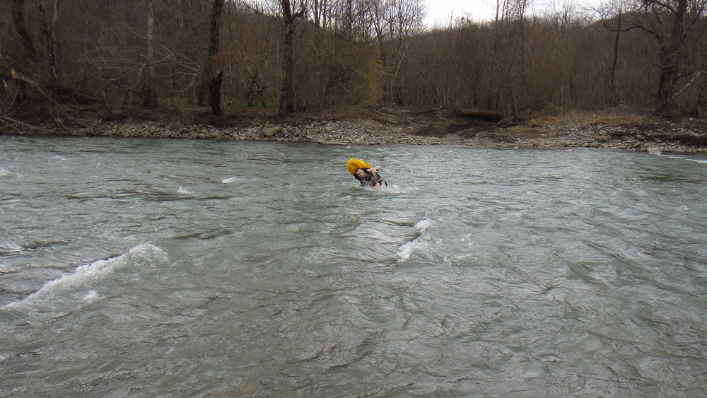 Опасно вы как-то речку переходите! Хыба ж так можно?? С ног не сбивает?