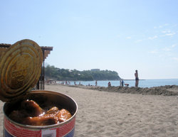 Пополоскавшись в море ( а эмоции были где-то такие: Ура! Ура! УРА-А-А! Море!!! ) насколько позволила закатанная одежда (купальник с парео оказались лишним грузиком в моем багаже), устроилась на песочке, открыла баночку мега-бычков и ... релакс )))