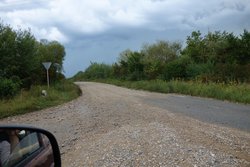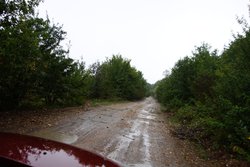 Но есть "изюминка" - с альтернативами - за Майкопом. За Курджипской до Дагестанской - отличный асфальт, который при повороте на Безводный превращается в 15км всепогодной, хорошо укатанной гравийки. Можно гравийку сократить в три раза, ибо есть альтернативный вариант трека - через Дагестанскую и Красный Дагестан, и мы его даже проехали... Там всего 5км без асфальта... Но грунтово-гравийной дороги, в паре мест условно-проезжаемой в непогоду - мы его проезжали в ливень, так что худшее состояние дороги вполне наглядно созерцали.
