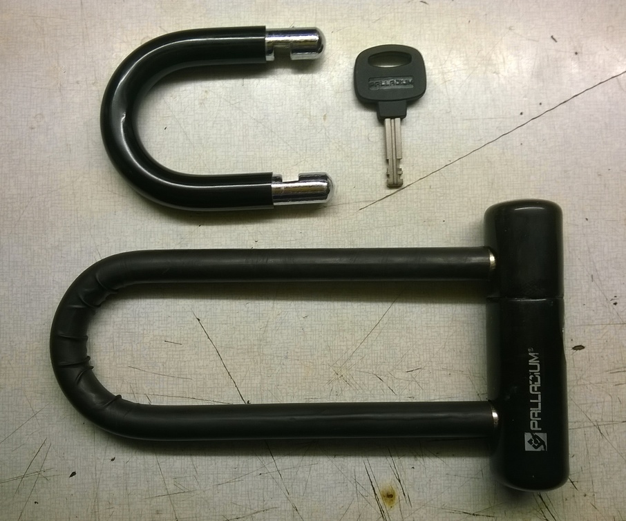 Дисковая личинка (более устойчива к интелектуальным методам взлома ) ,душка диаметром 12 мм ,пространство внутри душки 45мм , вес 330 грамм( без душки 175) ,приятно обрезиненый корпус (небудет сильно краску корябать :) ) . В планах изготовить более глубокую душку дабы сцеплять колесо с рамой . Идея есть , процесс пошёл .