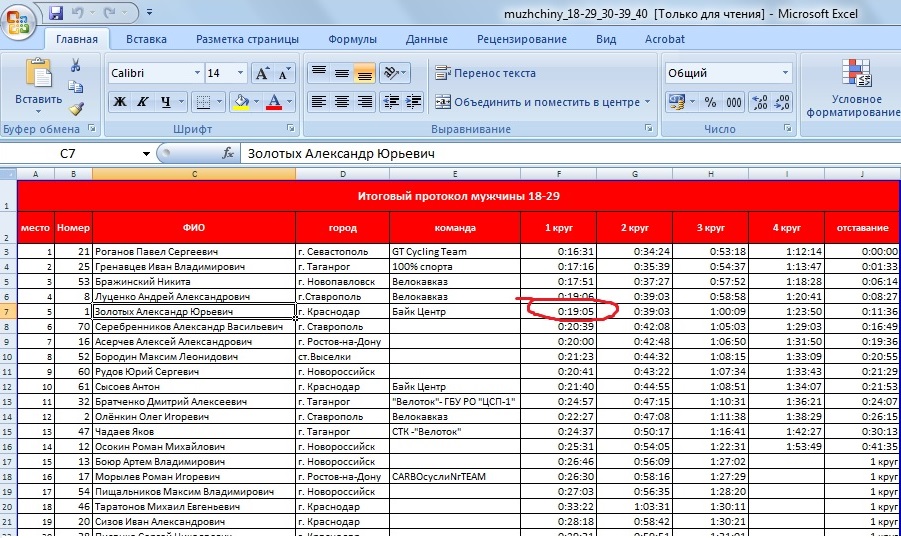Вероятно, первоначально забыли, что меня запускали на старт во второй группе, а не в первой :-). Вот ещё одно доказательство пользы от видеосъёмки заезда, надо было на на Гоупро и свой гоночный заезд снимать.