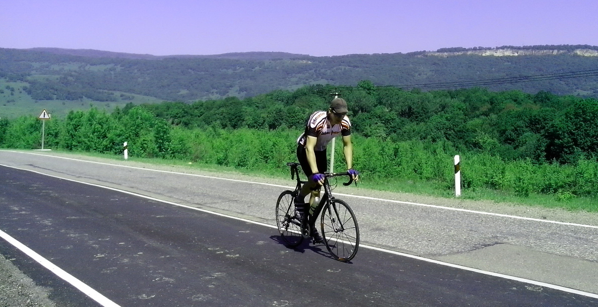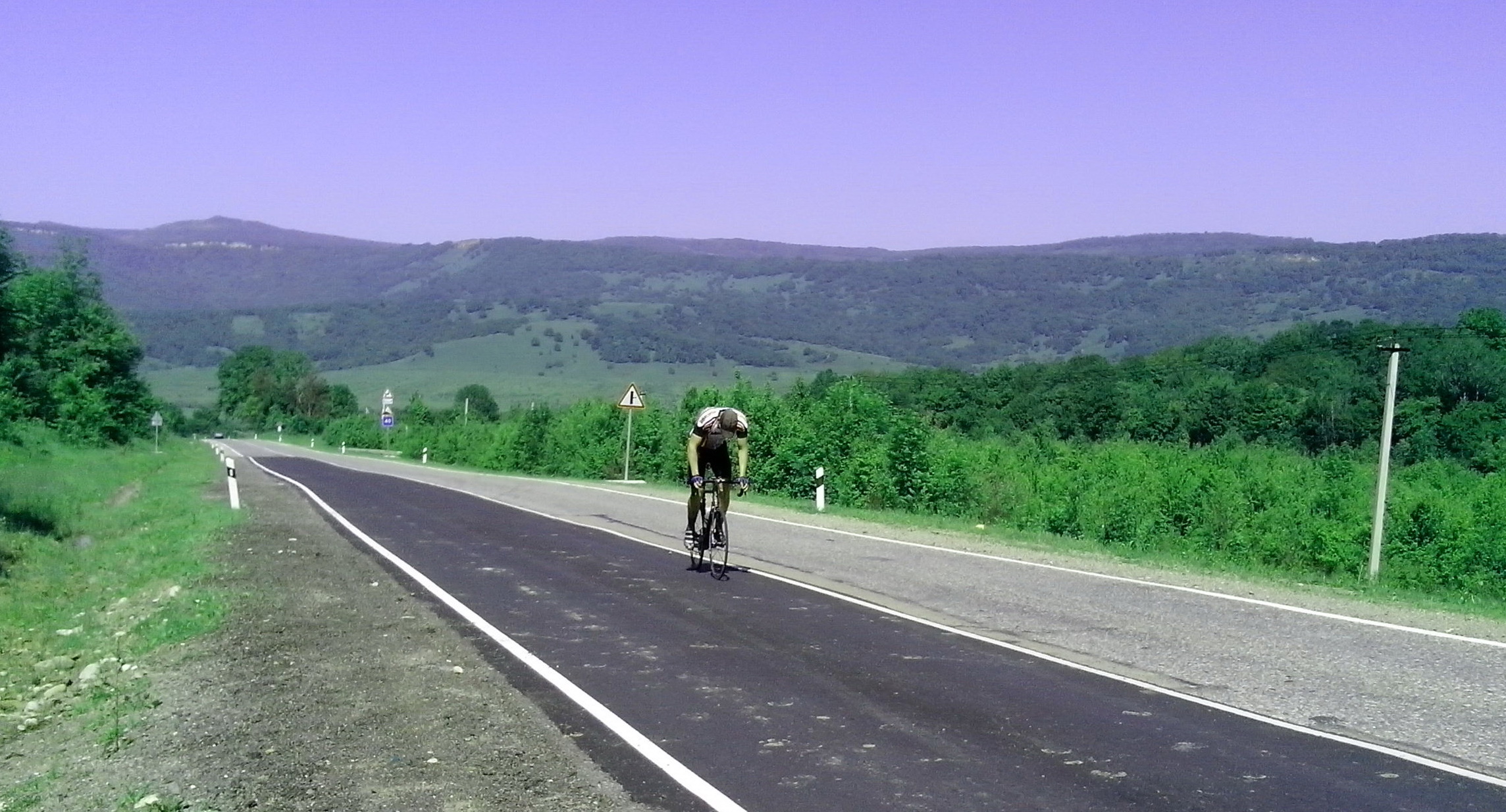 Маршрут хорош тем, что на старте жарко, но по мере набора высоты становится все прохладнее и свежее, что не может не радовать после душного города. Машин традиционно немного.